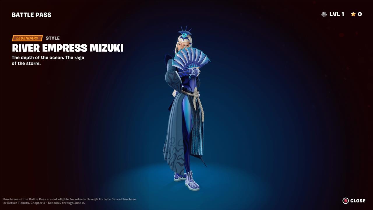 Mizuki stands out as a striking tier reward, blending regal aesthetics with a fierce edge. Her design draws on Japanese warrior influences, featuring ornate armor, flowing fabrics, and a commanding presence that reflects her status within the season’s theme. Players can earn her additional styles and accessories by progressing through the later pages of the battle pass, making her one of the most visually impressive characters of Chapter 4 Season 2.