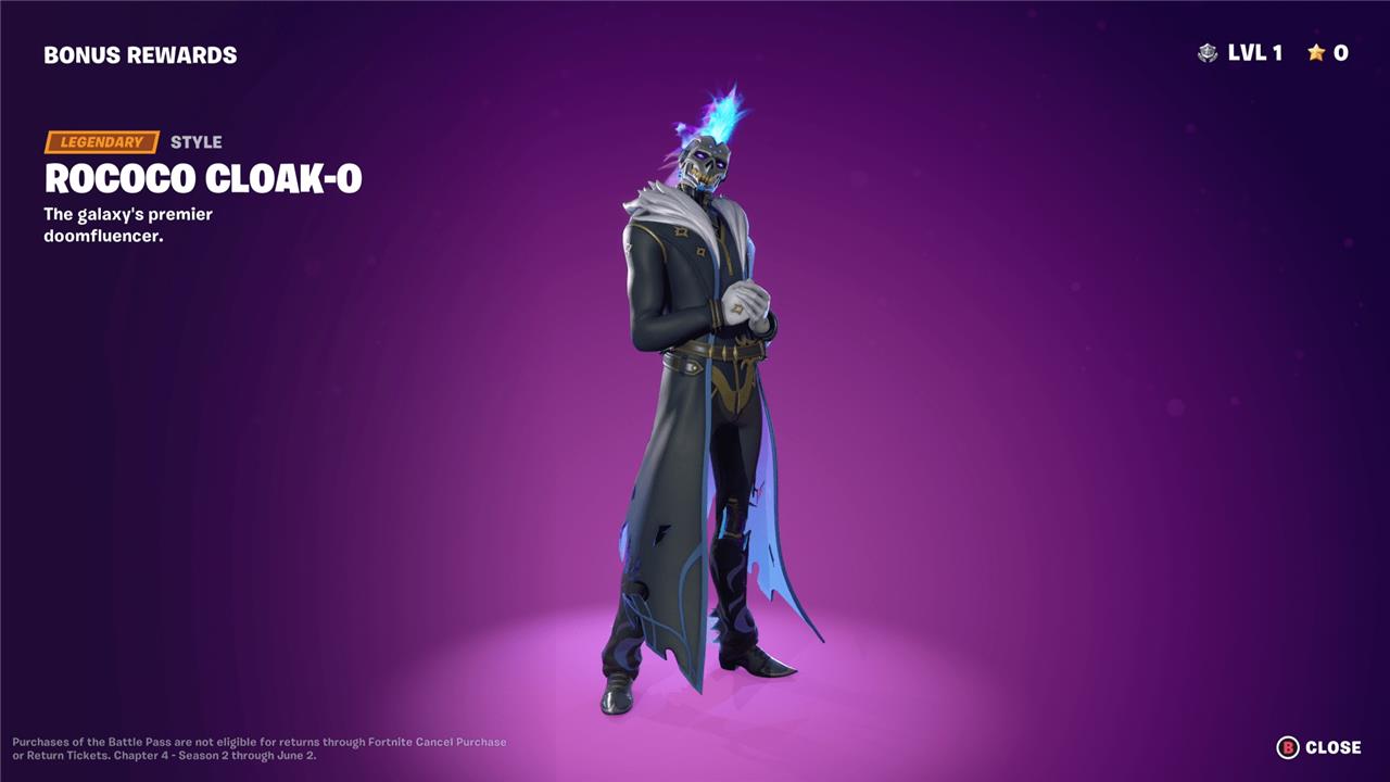 Unlockable style: Rococo Cloak-o (bonus reward after completing battle pass):