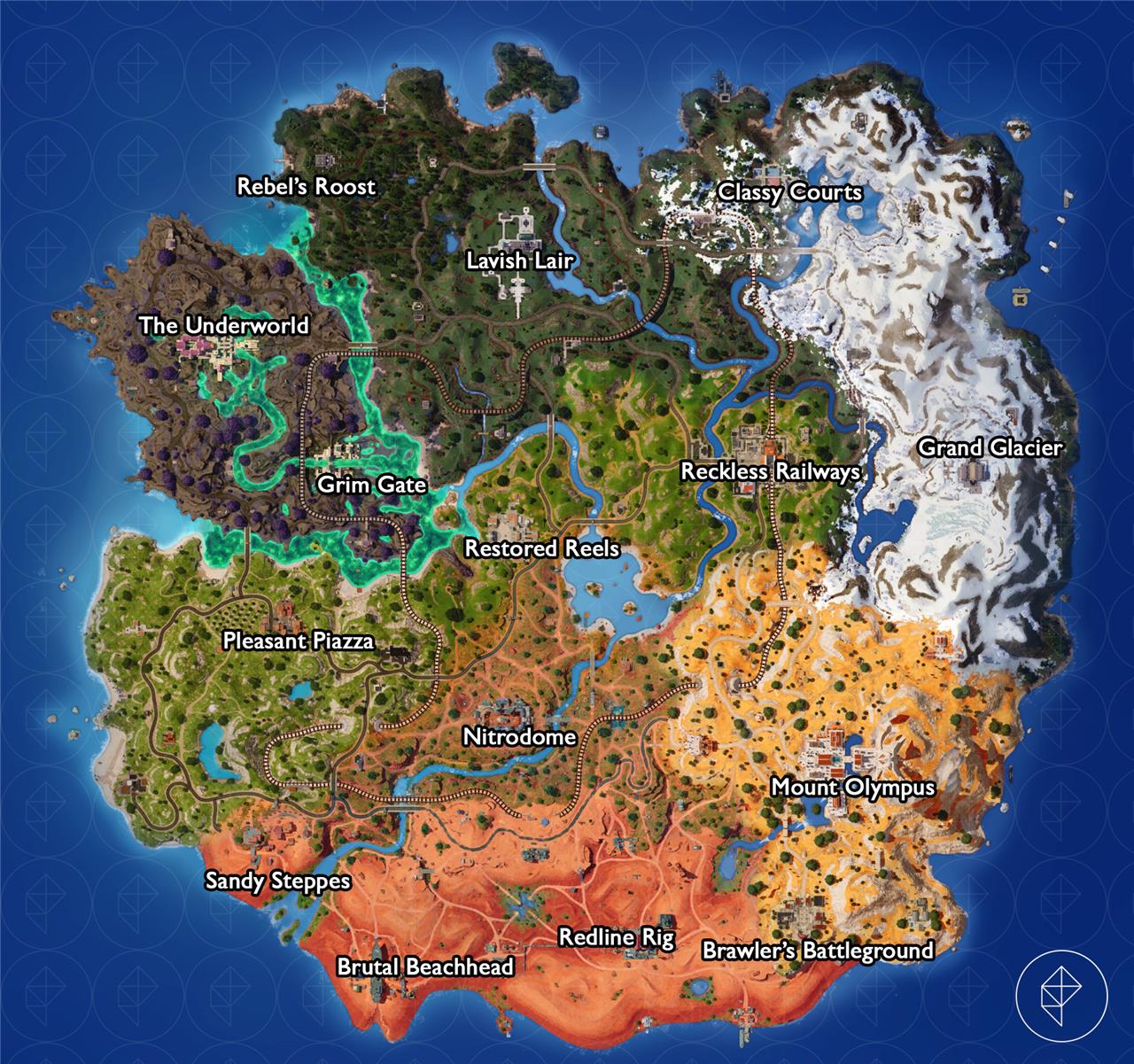 The Fortnite map for Chapter 5 Season 3, titled “Wrecked,” has undergone a dramatic transformation into a post-apocalyptic wasteland, particularly in the southern part of the island which is now dominated by a desert biome. This update introduces four new major points of interest (POIs): Redline Rig, Nitrodome, Brutal Beachhead, and Sandy Steppes, each with unique themes and characters tied to the Wasteland Warriors faction. Notably, several previous POIs such as Mount Olympus, Fending Fields, Restored Reels, and The Underworld have been removed or altered to fit the new setting. The season emphasizes vehicle combat, featuring new vehicle mods and combat mechanics that complement the rugged, war-torn environment. This overhaul offers players fresh exploration opportunities and gameplay dynamics centered around the harsh desert landscape and its hostile inhabitants.