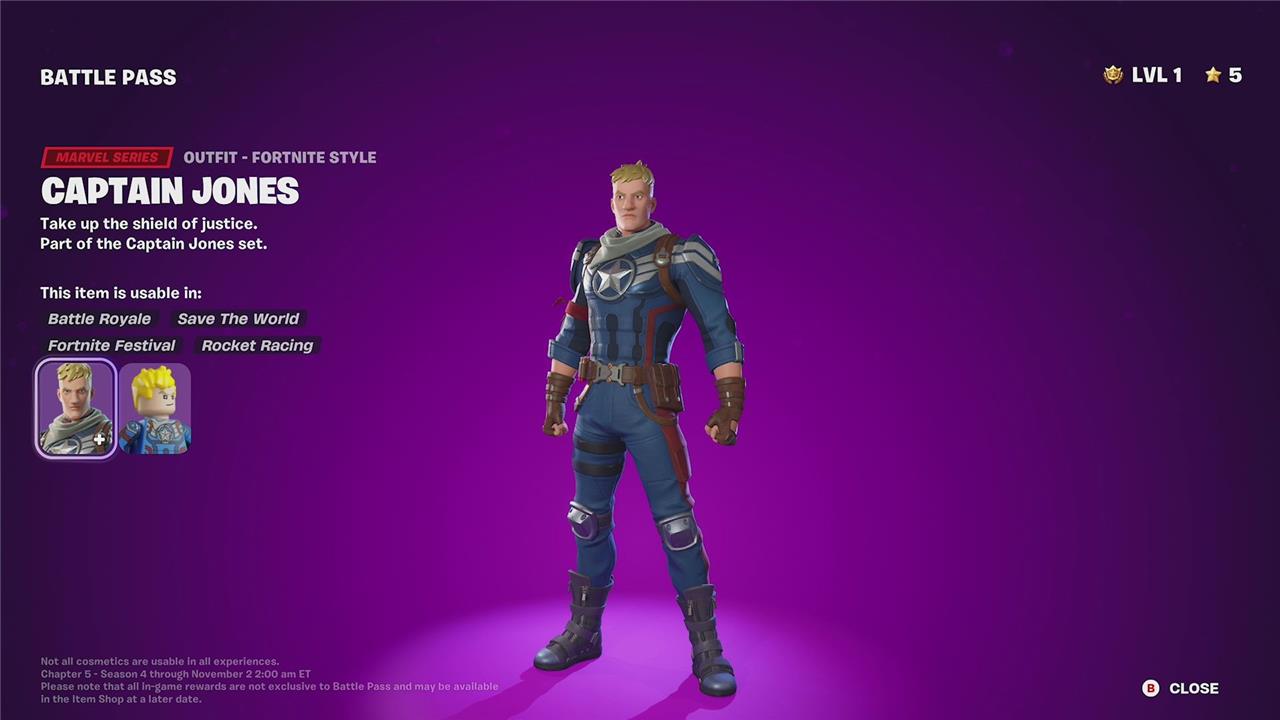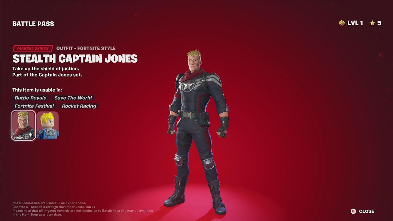 Captain Jones is a Marvel Series outfit introduced in Fortnite Chapter 5 Season 4, unlocked at Battle Pass Tier 54. The skin is part of the Captain Jones set and features a heroic design inspired by classic Marvel themes. Players can also unlock an alternate style called Stealth Captain Jones at Tier 62, which offers a sleek, tactical look. There have been fan suggestions for additional styles, such as a variant based on Captain America’s Infinity War costume, but the official unlockable styles currently include the base and stealth versions. To obtain Captain Jones, players must progress through the Battle Pass and earn the required Battle Stars.