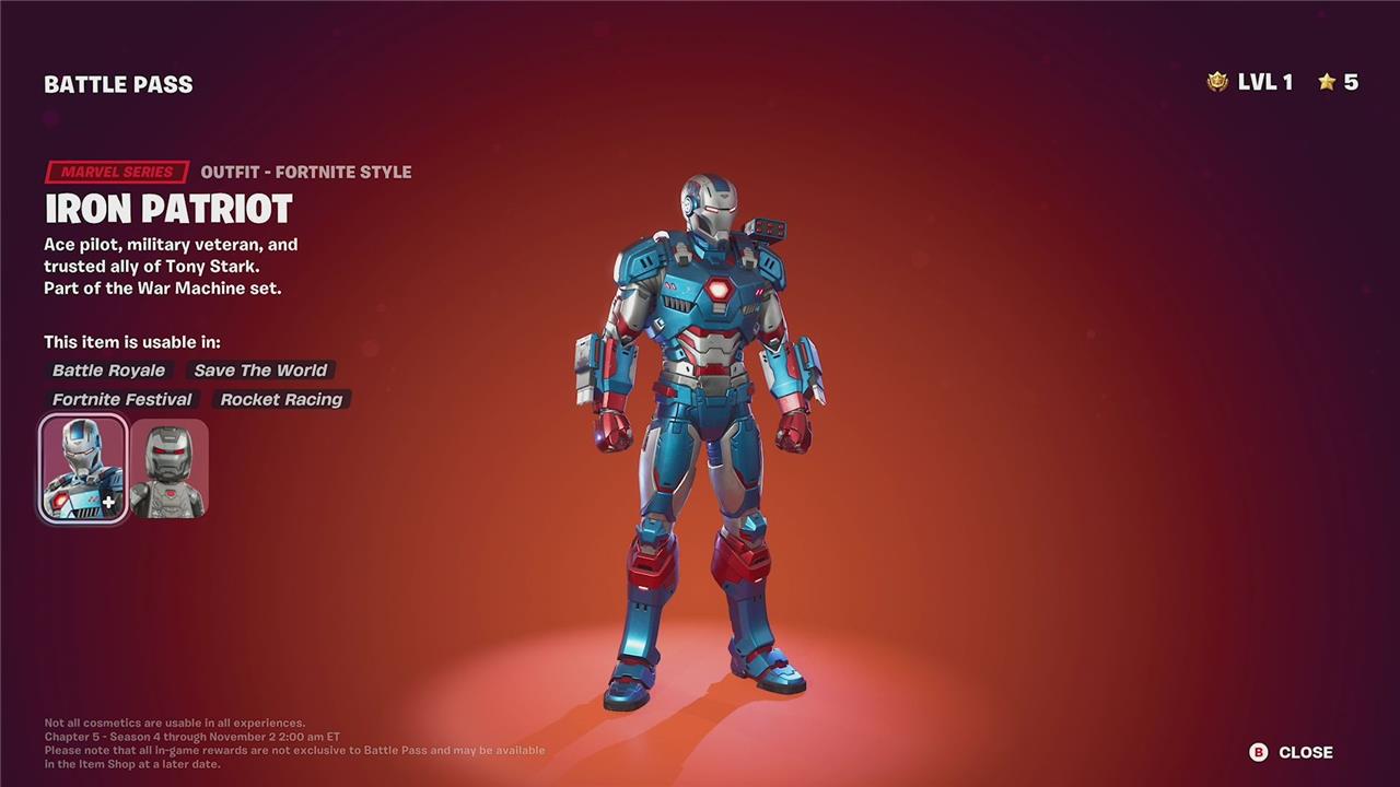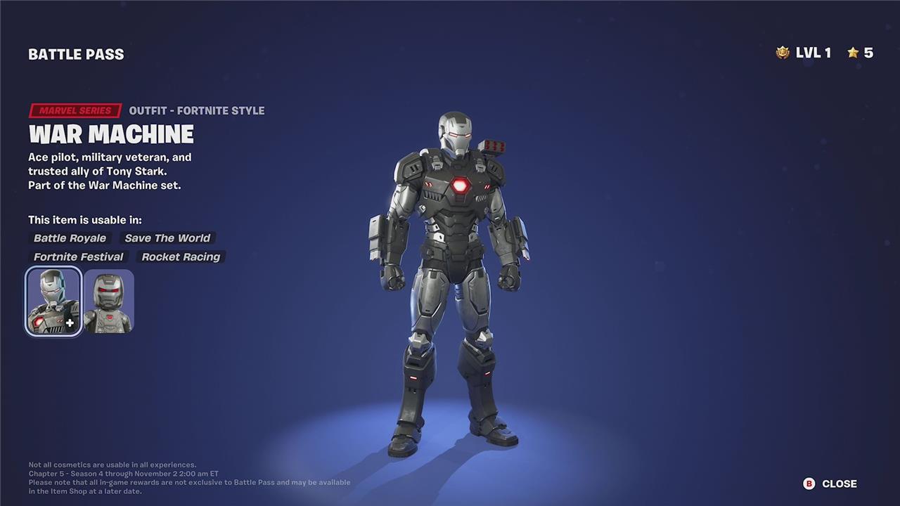 The War Machine skin in Fortnite Chapter 5 Season 4 Battle Pass is a standout Marvel-themed outfit that players can unlock as they progress through the tiers. War Machine features multiple unlockable super styles, including Arcane, Cold Sorcery, and Doomforged variants, which add unique visual effects and thematic elements to the base skin. These styles enhance the character’s appearance, offering players a range of customization options to suit their preferences while showcasing different aspects of War Machine’s power and lore. Unlocking these styles typically involves completing specific challenges or reaching certain milestones within the season.