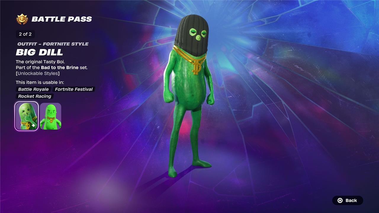 Unlockable style: Chamoy Big Dill (page 10 of the Battle Pass):