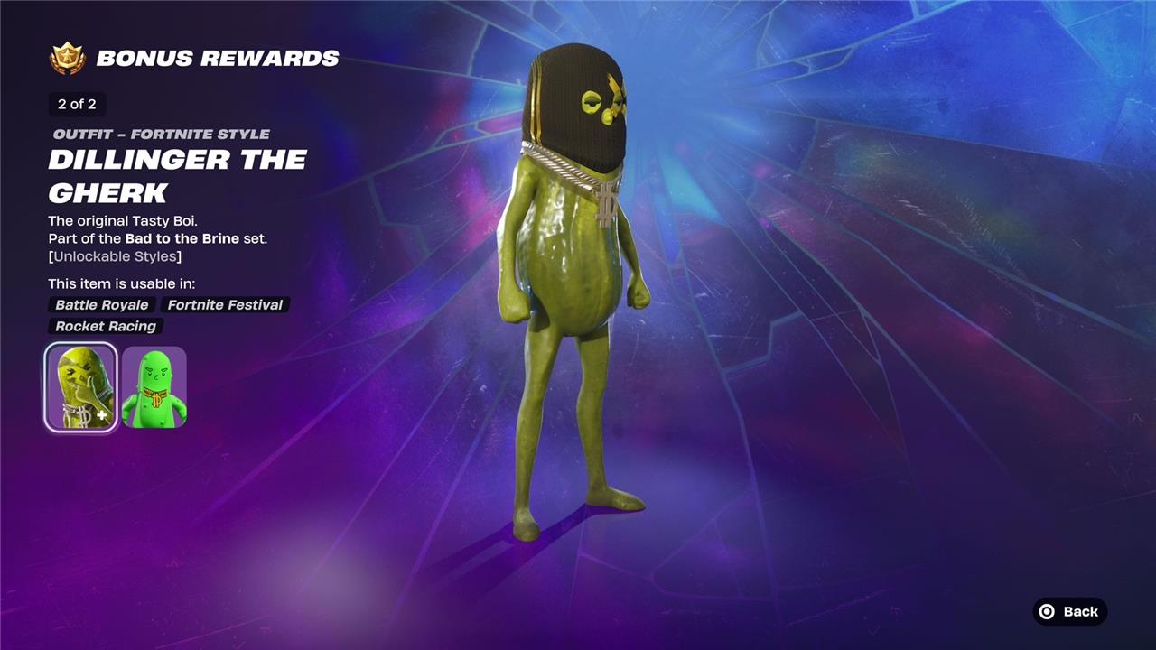 Unlockable style: Dillenger the Gherk (found in the bonus track after completing battle pass):