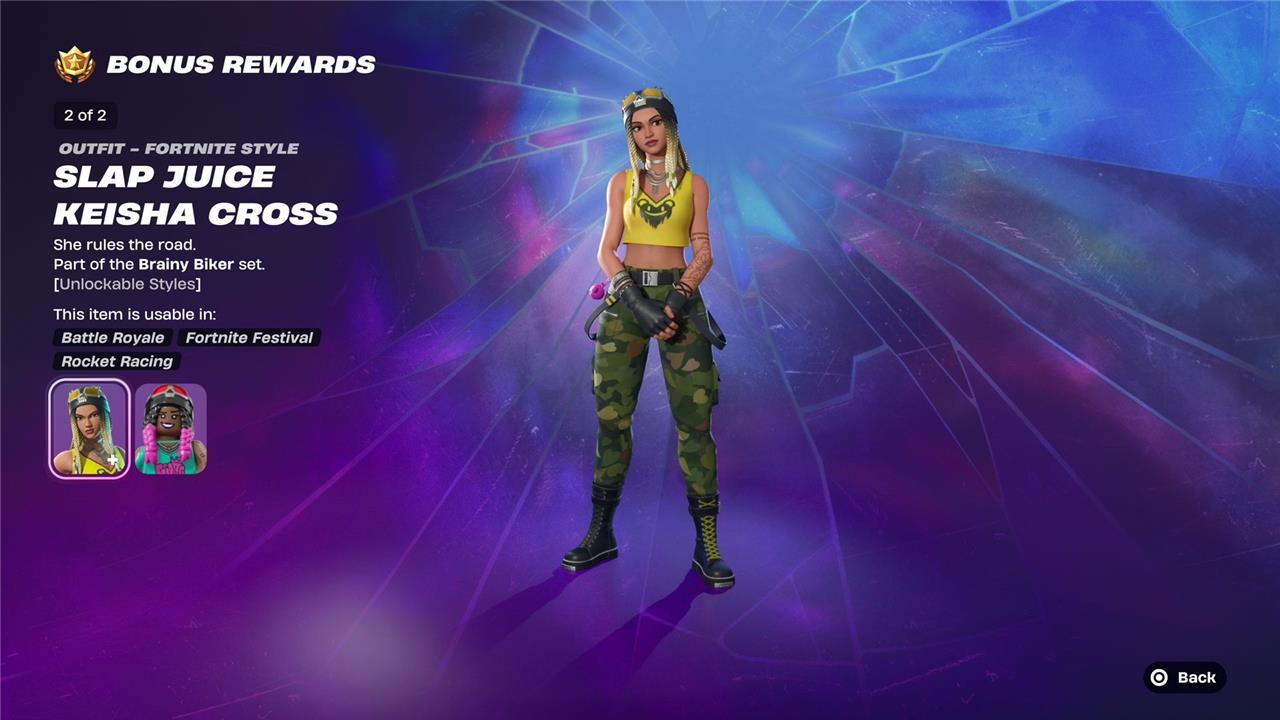 Unlockable style: Slap Juice Keisha Cross (found in the bonus track after completing battle pass):