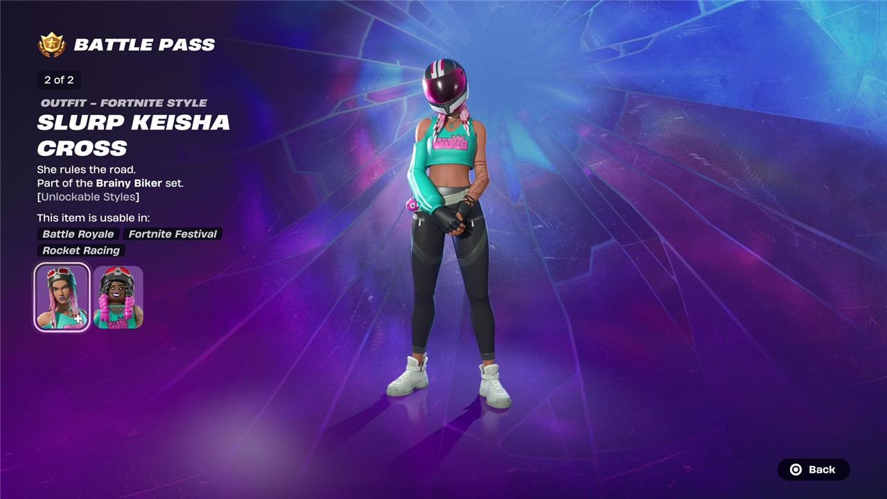 Unlockable style: Slurp Keisha Cross (page 12 of the Battle Pass):
