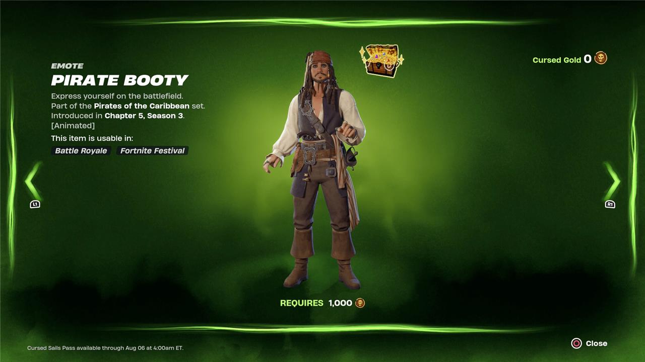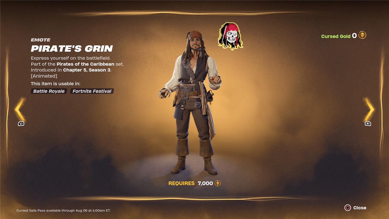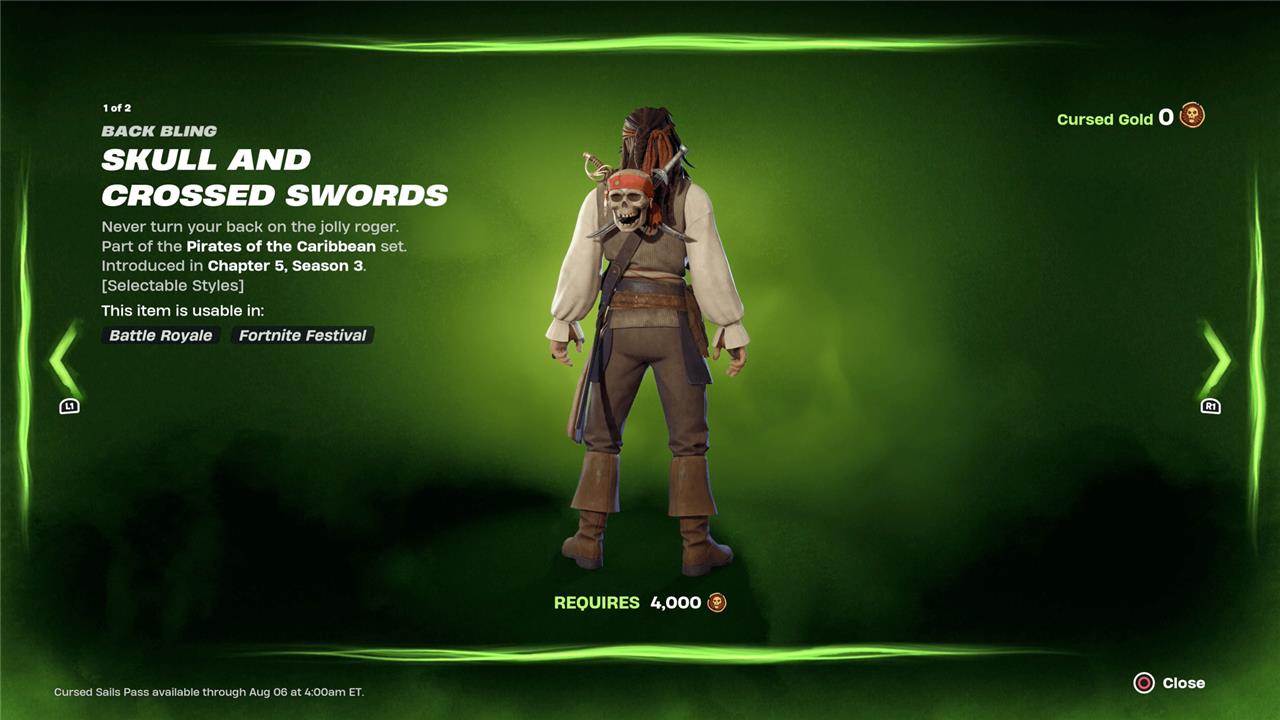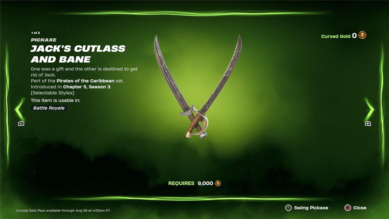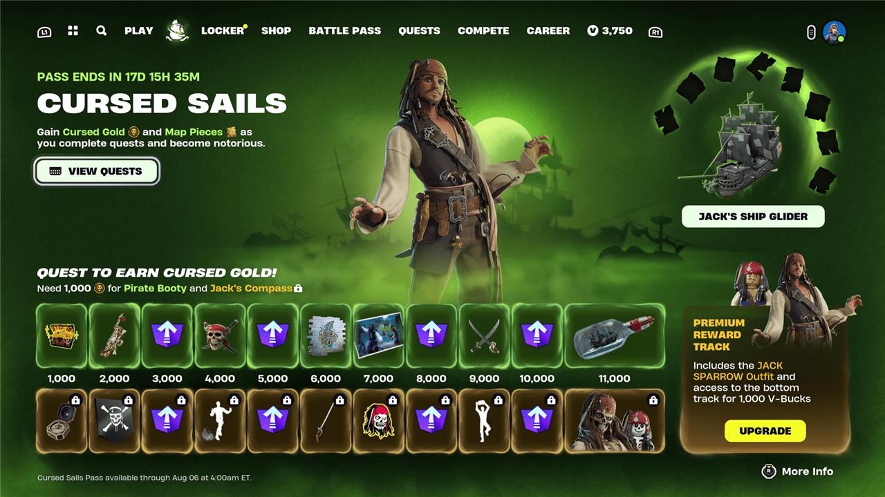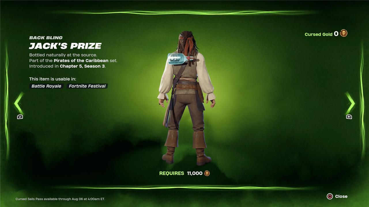 The Cursed Sails Pass in Fortnite offers a rich array of pirate-themed rewards tied to the Pirates of the Caribbean event. Players can earn Cursed Gold by completing Cursed Sails Quests, which unlocks items on both the free and premium reward tracks. The free track includes rewards like the Skull and Crossed Swords Back Bling, Jack’s Cutlass and Bane Pickaxe, and various emotes and sprays. For 1,000 V-Bucks, players can upgrade to the Premium Pass, granting immediate access to the iconic Jack Sparrow skin, Jack’s Compass Back Bling, Jack Sparrow’s Sword Pickaxe, and additional exclusive emotes and cosmetics. Completing all quests also unlocks special items like Jack’s Ship Glider, making the pass a comprehensive package for fans of the pirate theme.
