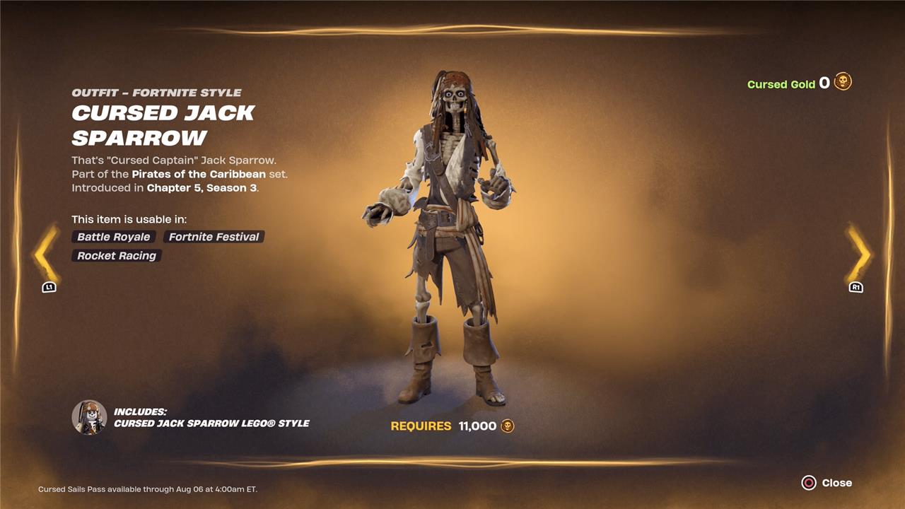 The Fortnite shop is packed with pirate-themed skins during the Cursed Sails event, featuring iconic characters from Disney’s Pirates of the Caribbean. Players can purchase outfits for Elizabeth Swann, Captain Barbossa, and Davy Jones, each coming with their own unique LEGO Style and themed accessories like the Dead Man’s Chest Back Bling and Elizabeth’s Favor Pickaxe. These skins are available individually or as part of special bundles, allowing fans to bring their favorite pirates into battle royale matches and LEGO Fortnite adventures alike.