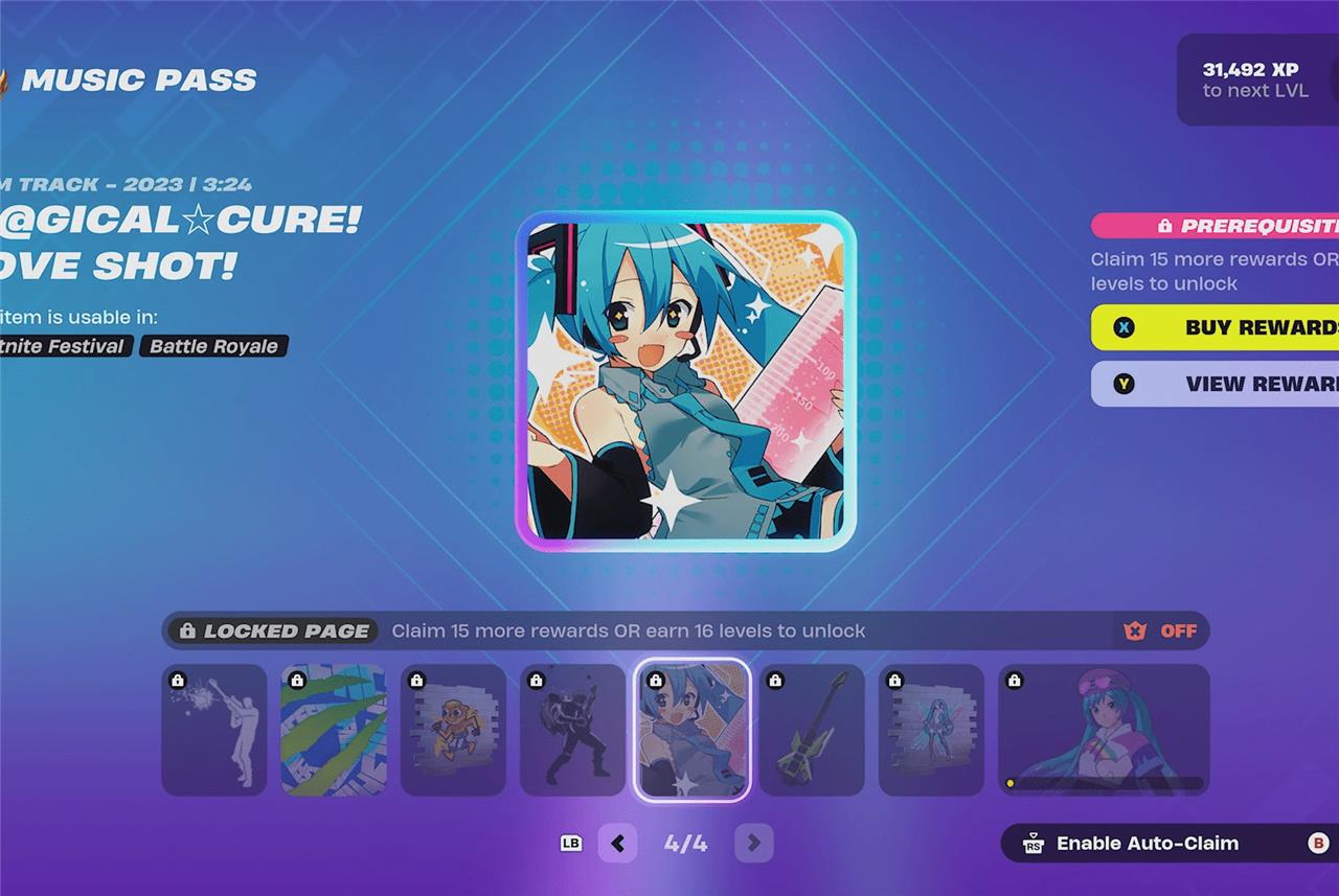 The Neko Hatsune Miku skin is immediately unlocked once you purchase the Season 7 music pass, while the Brite Hatsune Miku style is unlocked at the end of the pass.