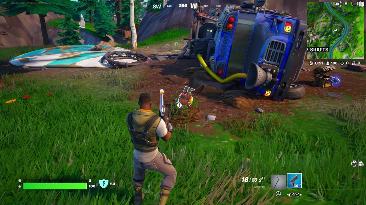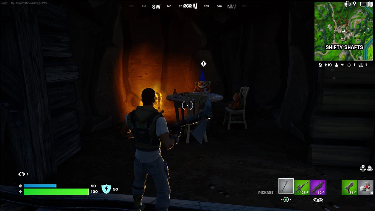 To the northeast of Shifty Shafts, look for a crashed Battle Bus on a hilltop. You’ll find this (upside-down) gnome at the front of the bus.
