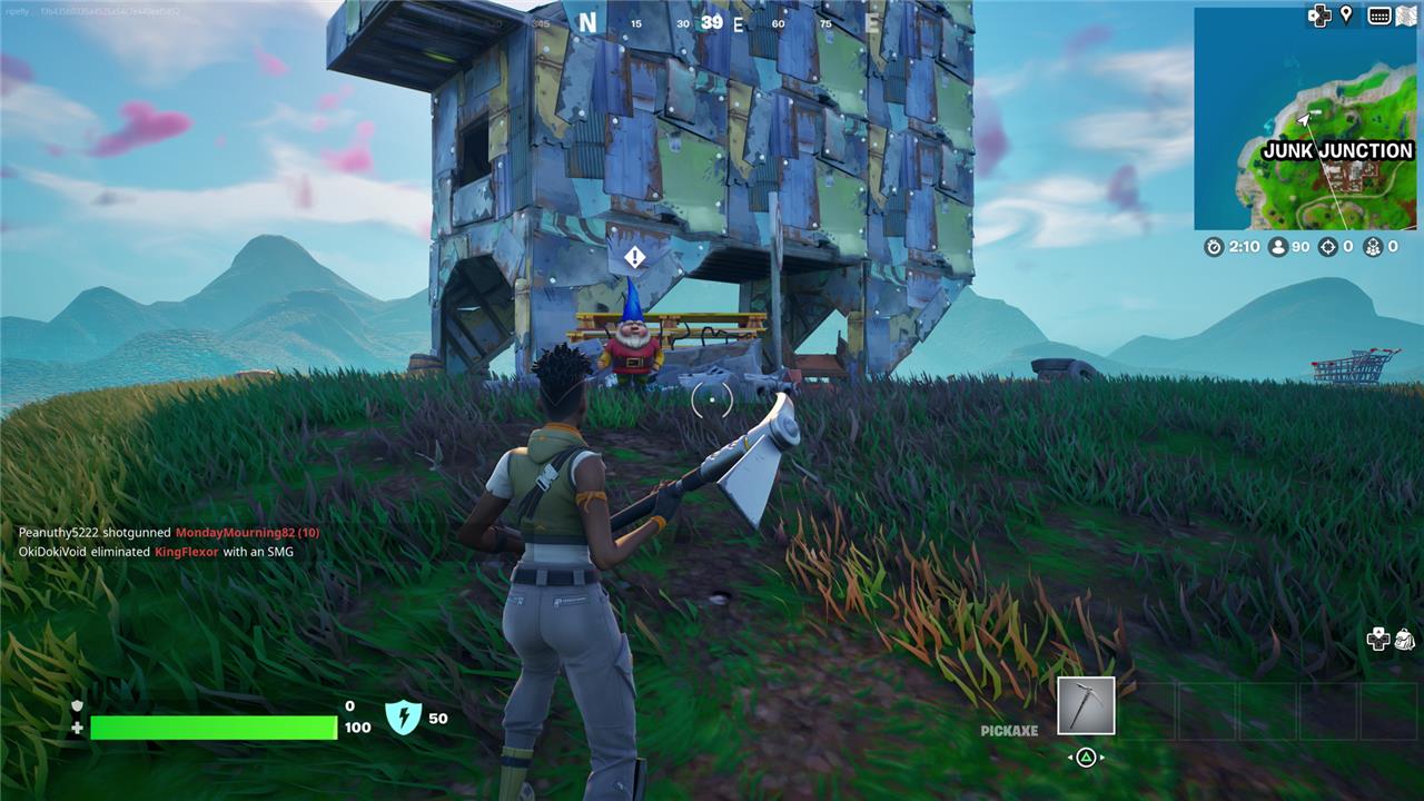 To the northwest of Junk Junction, you’ll find a gnome by the base of the llama trash sculpture.