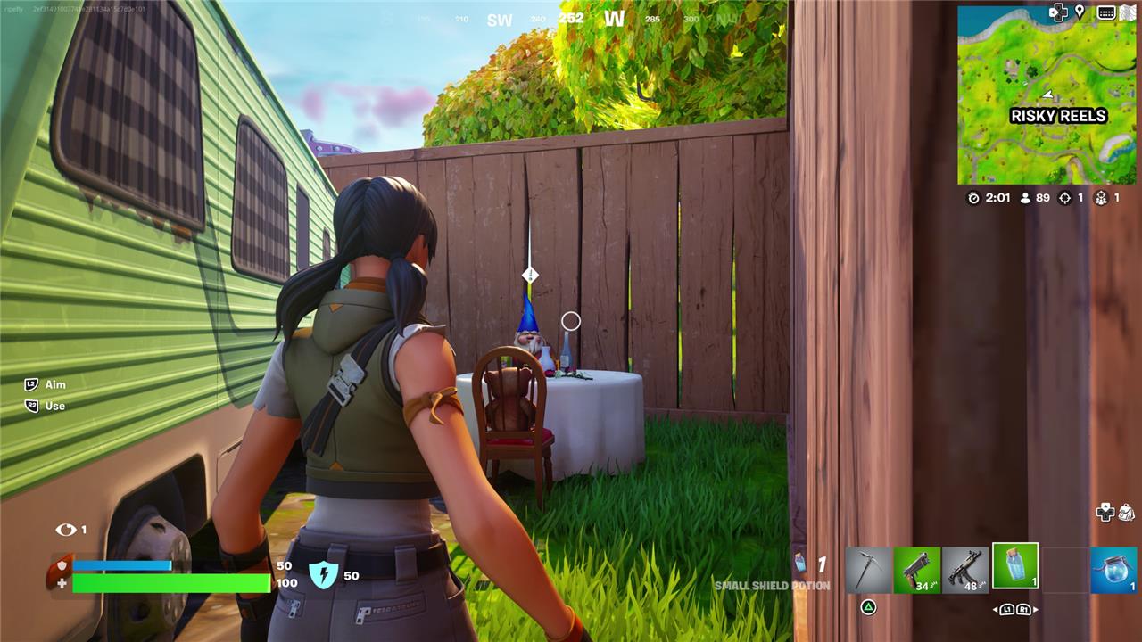 Head to the northwest corner of Risky Reels, and you’ll find this gnome inside the fence behind a parked RV.