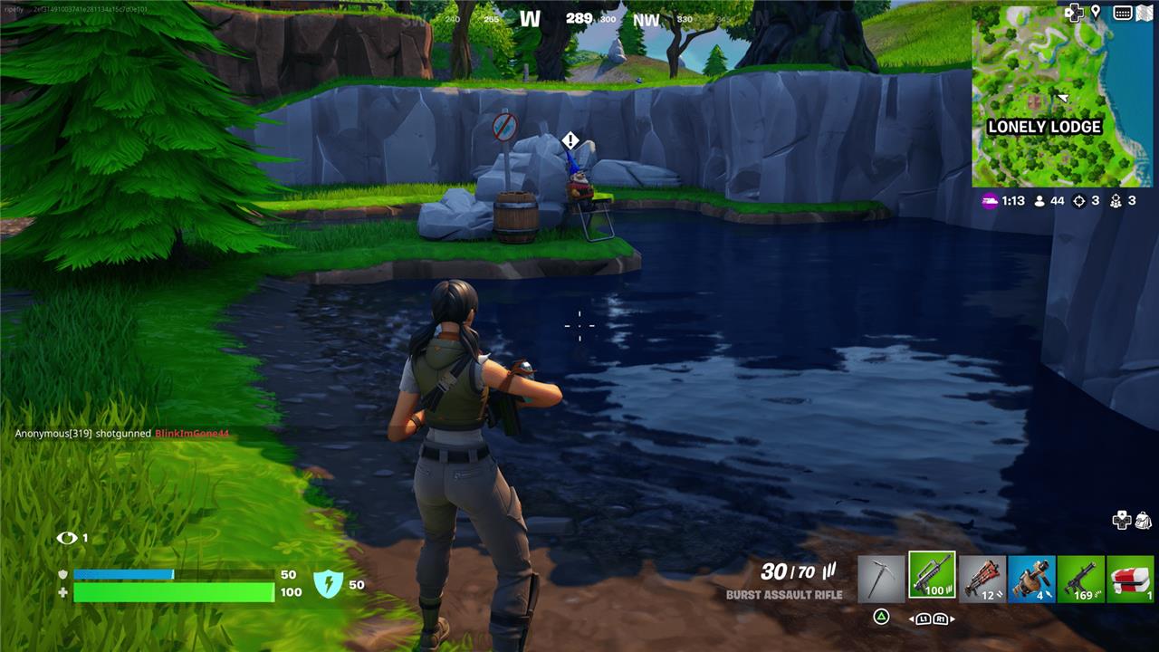 Just a little to the east of the eponymous Lonely Lodge, look for this gnome by a small pond. It’ll be sitting in a folding chair under a no fishing sign.