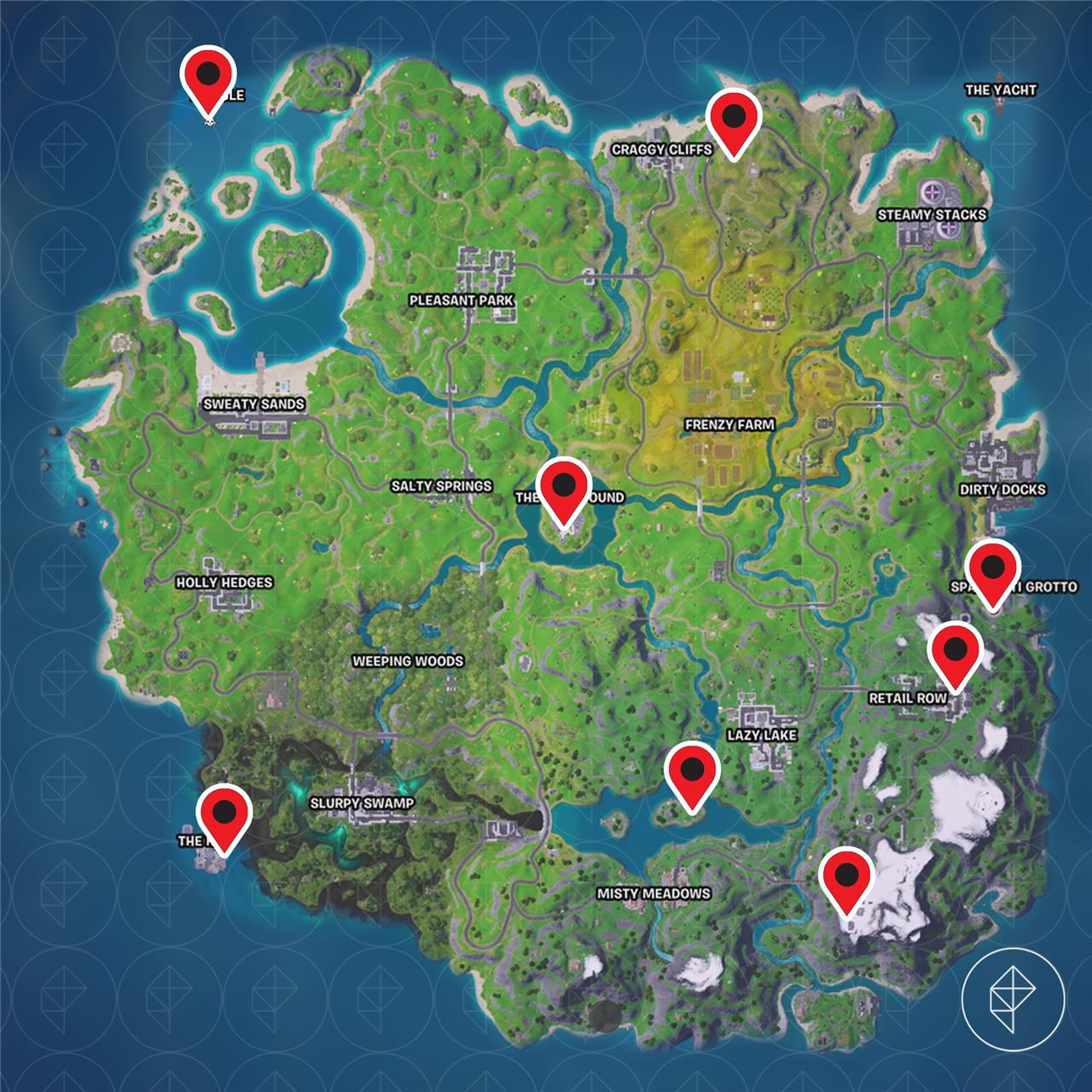 The helicopters don’t have any weaponry, but they’re fast and can move you across the map without worrying about silly things like roads. The Choppas are spread around the east and south sides of the map and there don’t appear to be any at all in the northwest. You’ll find them at POIs including one each at Snoop’s The Doggpound, Eminem’s Spaghetti Grotto, and Ice Spice’s Ice Isle.