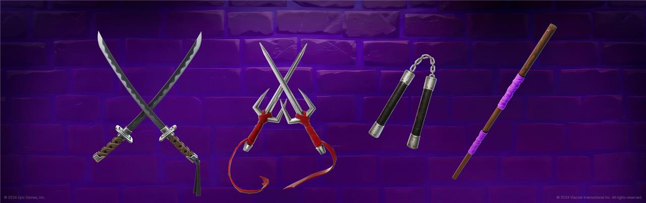 The Fortnite TMNT event introduces the iconic weapons of the Teenage Mutant Ninja Turtles as new mythic melee weapons: Leonardo’s Katanas, Raphael’s Sai, Donatello’s Staff, and Michelangelo’s Nunchaku. Each weapon features unique stats but shares the same abilities, including standard attacks, air attacks, dash attacks, and a double jump. These weapons can be found in chests, supply drops, and vending machines across the map, allowing players to wield the power of the heroes in a half-shell during the Cowabunga event. Alongside these weapons, players can also enjoy TMNT-themed Driftboards and healing Pizza Party boxes, enhancing the event’s nostalgic and action-packed experience.