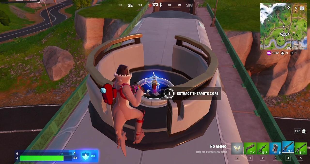 - Once you destroy a turret, walk over to where it was stationed. It will look like a destroyed machine and the game will give you the option to, “Extract the thermite core.”