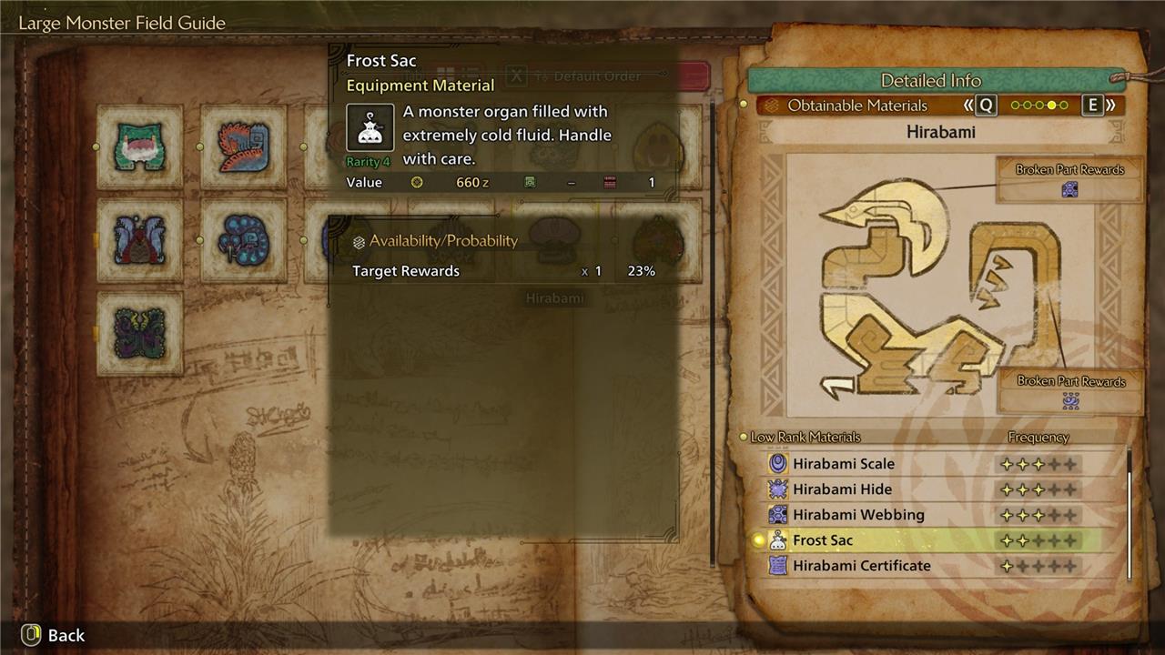 Targeting the correct monster rank is essential: Frost Sacs drop only from low-rank Hirabami, while Freezer Sacs drop from high-rank Hirabami and Jin Dahaad. Engaging these monsters in their respective rank quests ensures you are farming the right materials.