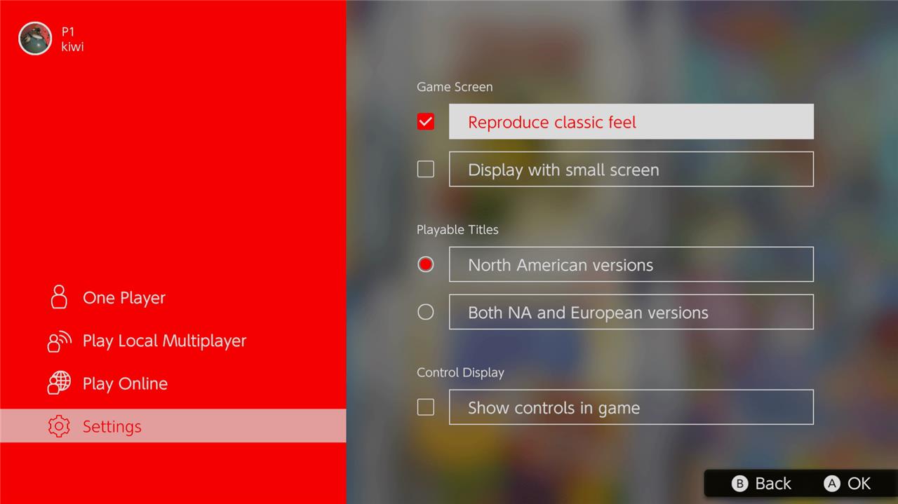 There are also similar settings for the NES and Super Nintendo games. You can choose to play with different visual options, and even slap a CRT filter over it if you want, which will add that old-school blur.