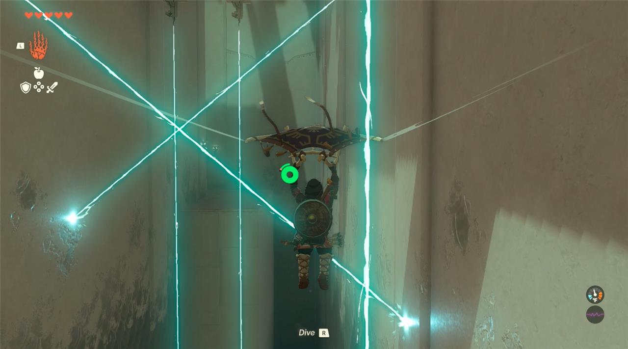 2. Turn right to find another ledge. Paraglide around the beams and follow the wind through the left side opening.