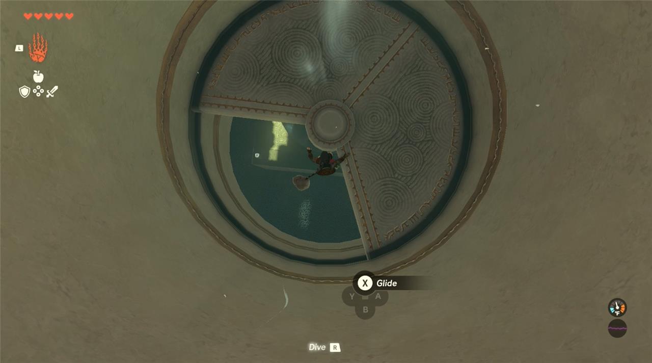 8. The end of the shrine is through the opening in the wall, but to retrieve the shrine’s chest, drop down into the shaft.