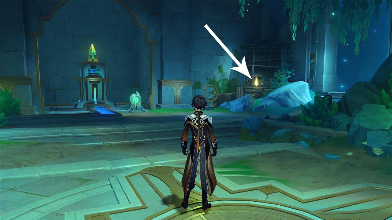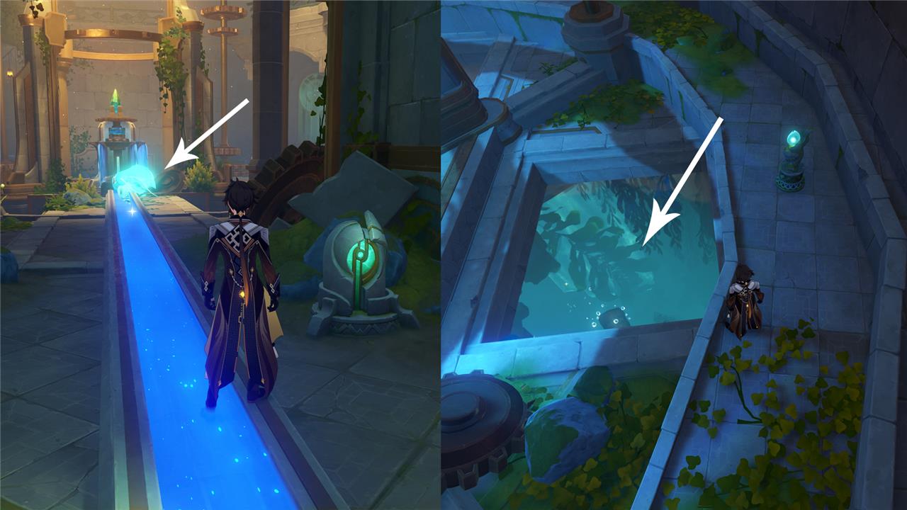 10. Next, take the path to the east and use the elevator. Release the stream, but also grab the item behind the mechanism, as shown in the picture below. This is the special key you need to unlock the water flow coming from the north.