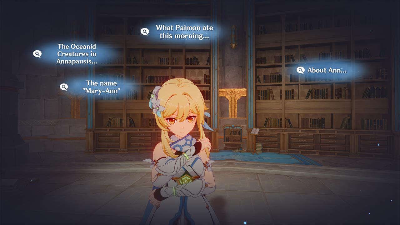 18. After the dialogue, talk to Caterpillar, Ann, Seymour, and Paimon individually.