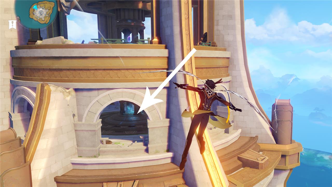 4. The next puzzle is on a lower floor, which you can reach from the outside. Glide down and enter the room shown in the picture below.