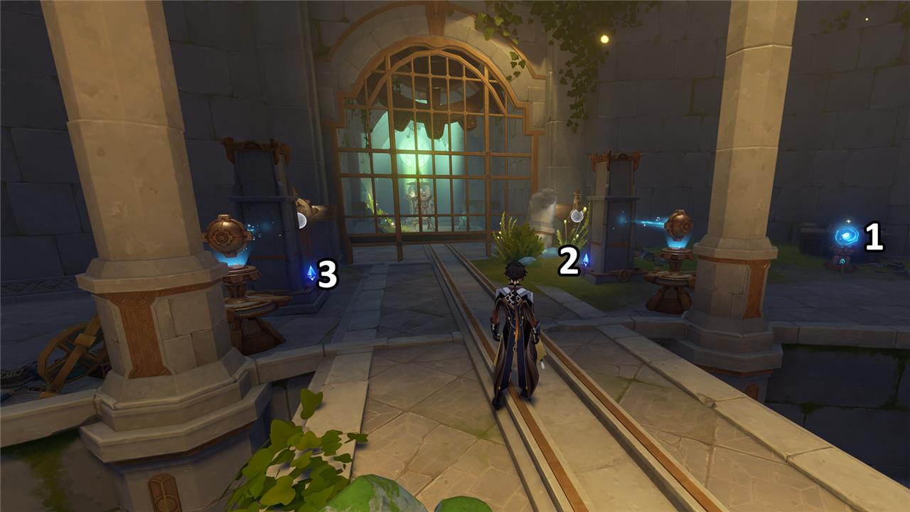 13. Use the mechanism on the right to open the door, then guide the Seelie back to its pillar on the floor level below.