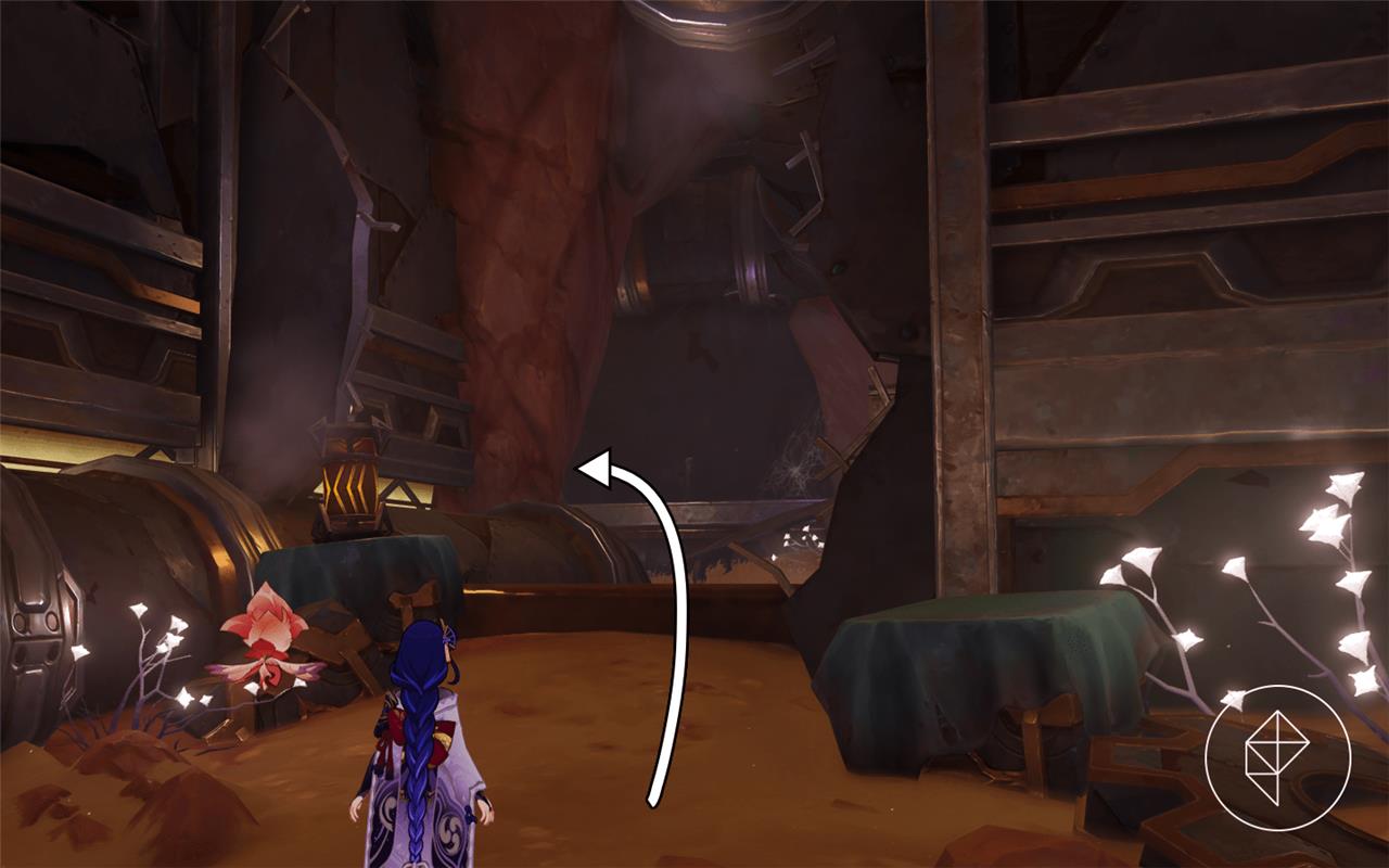 - Place the one of the Farrwicks by the frozen mixer that is receiving energy to unfreeze it. If you’re having trouble finding the right location, follow the image above by placing the Farrwick in the locations indicated by the green orbs.