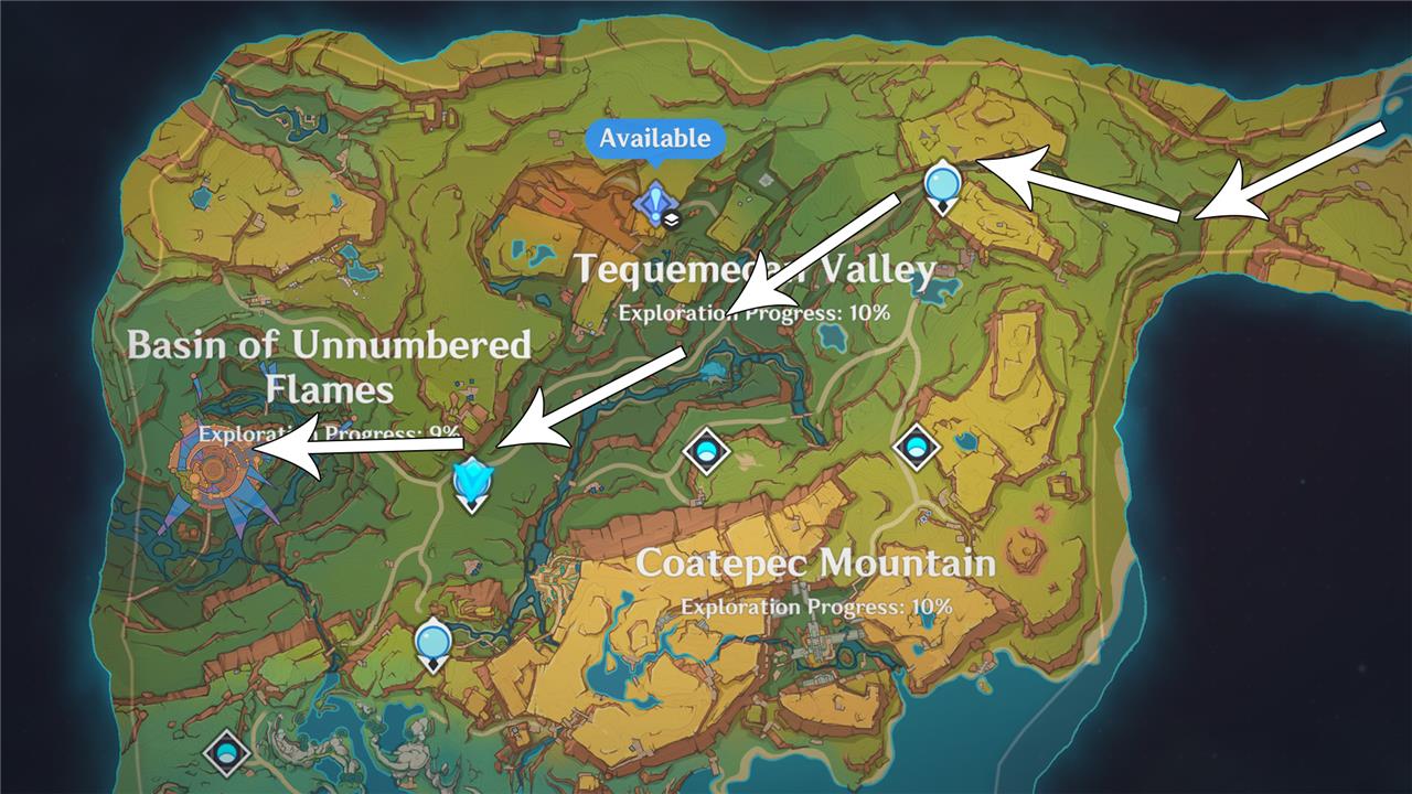 To get the Natlan weapon blueprints, you must visit the Stadium of the Sacred Flame and buy them from Alom, the local blacksmith. If you haven’t been there yet, you can enter Natlan from the Desert of Hadramaveth and follow the road to the west, through Tequemecan Valley (see map above for the full route). The Stadium of the Sacred Flame is in the Basin of the Unnumbered Flames area.