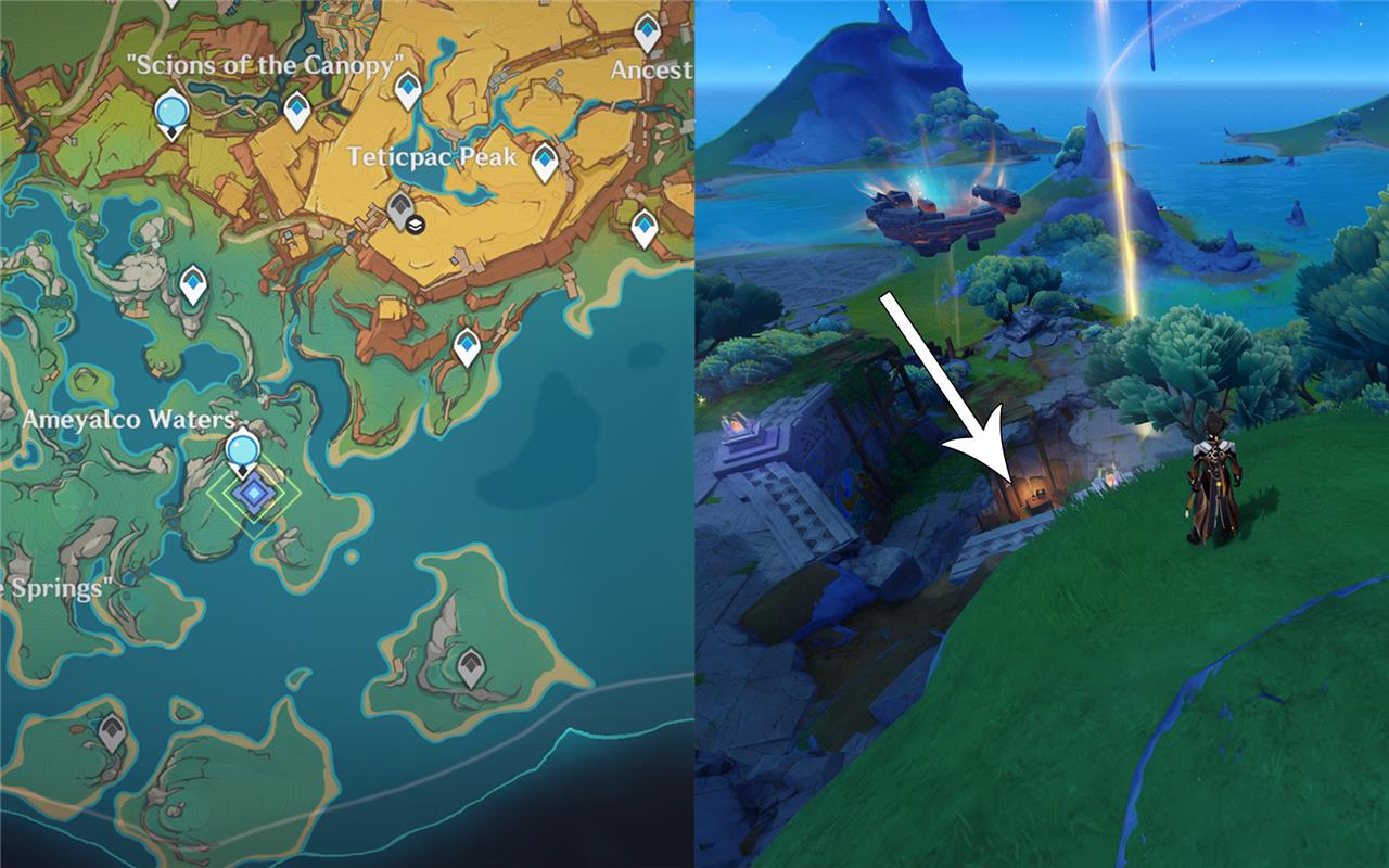 The “To Wish Upon a Star” world quest in Genshin Impact is located near the Ancestral Temple in Natlan. To start the quest, teleport to the waypoint northeast of the Ancestral Temple and head east to find a kid named Orqo at a large crater with a quest marker above his head. During the quest, you help Orqo investigate the crater where a star fell from the sky by collecting scattered star shards. You will transform into a Tepetlisaurus using a nearby Saurian icon to break a large structure and then gather the shards inside the crater. Completing this quest rewards you with 30 Primogems and unlocks a hidden achievement called “Awaken! Night Head!”.