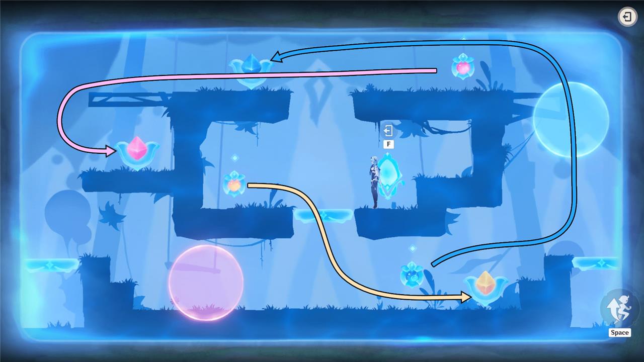 - Grab the pink orb and ride the elevator through the pink circle, and move the orb to the pink diamond.