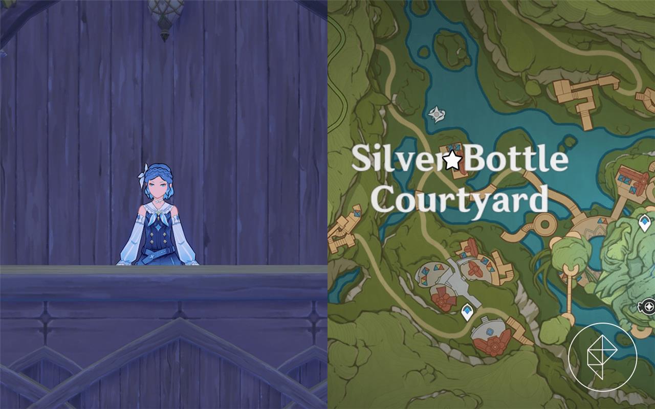 The central waypoint in Silver Bottle Courtyard places you right nearby her booth, requiring only a short southward walk along the pathways.โ