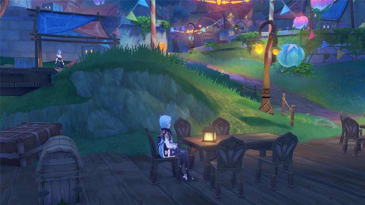 2. Head to the marked ring on your in-game map, and sit on the chair at the head of the table with the lamp on top of it. If you’re having trouble finding it, check out the image above.