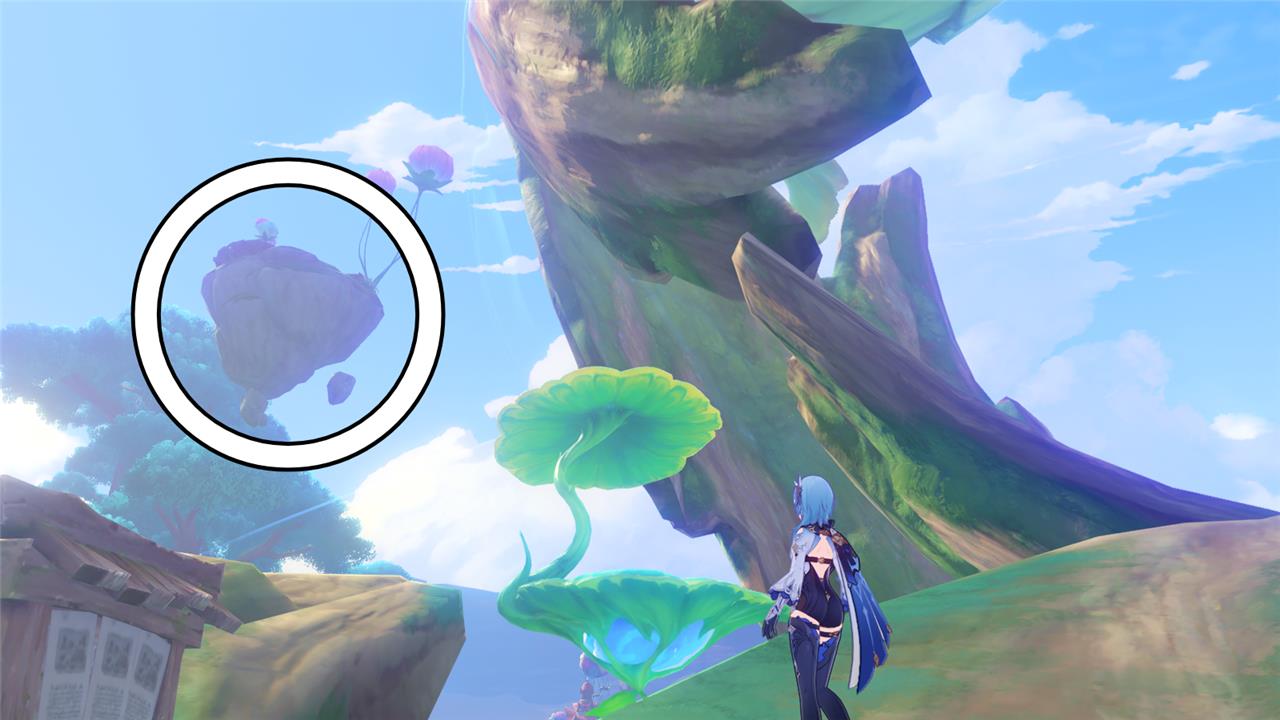 17. Ride the green platform until you can interact with a trail of four-leaf sigils that’ll take you to the floating island.