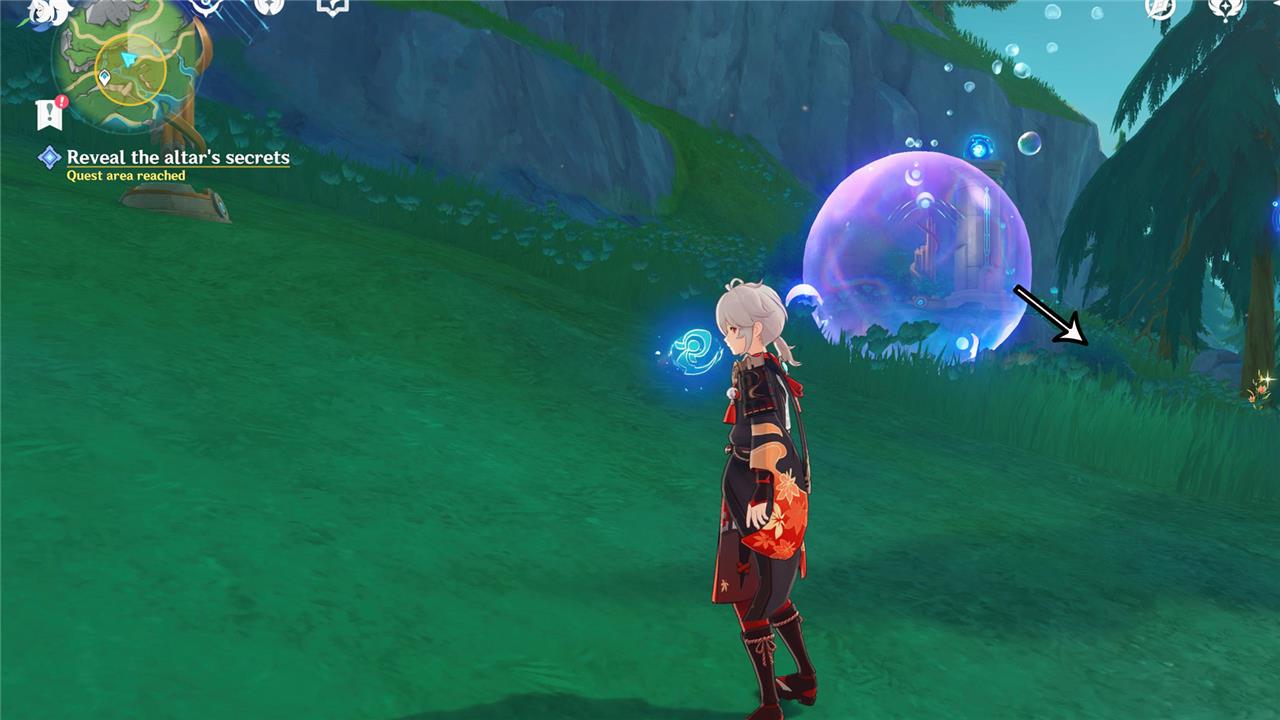 To investigate the Altar at Wilting Weeping Willow in Genshin Impact, first dive underwater beneath the large wilting tree in Erinnyes Forest to find a stone altar. Interact with the altar to start a dialogue with Paimon and trigger the quest. To activate the altar, you need to remove the Contaminated Bacterial Mats near the Dew Branch using the Ball Octopus’ ability. However, the Ball Octopus is trapped in seagrass and must be freed by using the ability of a Xenochromatic Hunter Ray, which you acquire by defeating a pack of Hunter Rays north of the altar. Once freed, use the Ball Octopus’ ability to clear the mats, causing a Dew Bubble to appear. Place this bubble strategically between the Harmonious Reeds to activate them in sequence, which will reveal an item on the altar. Interact with this item to complete the investigation and progress the quest.