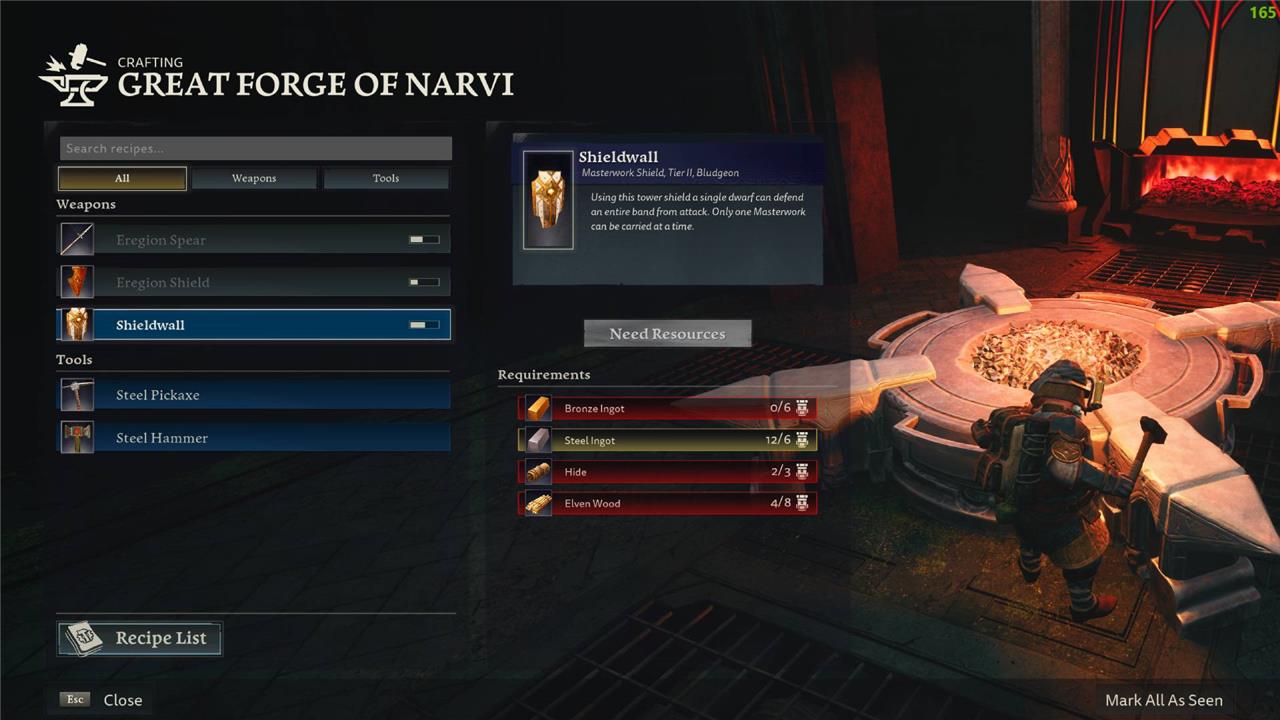 It’s worth noting that the Great Forge of Narvi does unlock some recipes which must be crafted on location, including the Eregion Spear, Eregion Shield, and the Shieldwall, which is the first Masterwork item available to you.