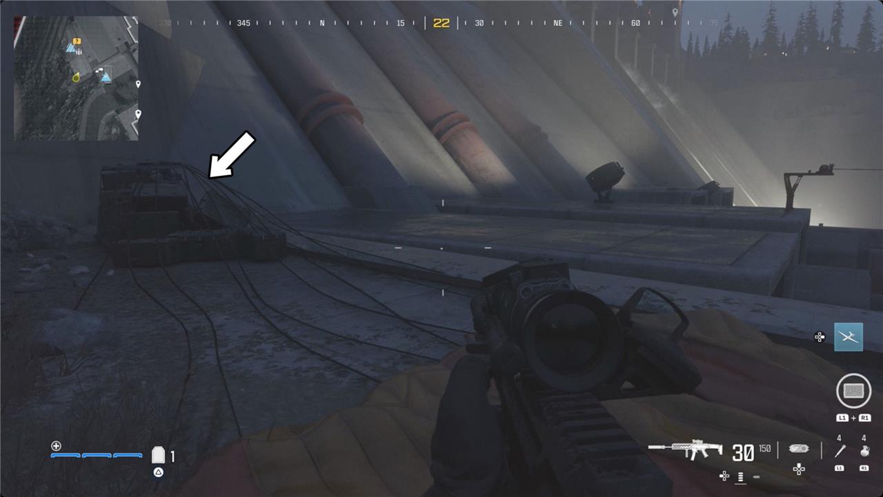 Keep following the bridge through its S-turn as it heads west. At the end, look north to the road below you next to the spillway. You’ll find a crate with the Anti-Armor Rounds field upgrade there.