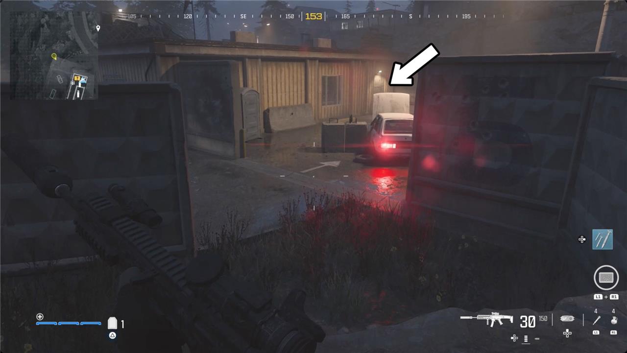 Back outside, there’s another squat building to the east that has two orange crates inside. The Recon Drone field upgrade is in the one opposite the door.