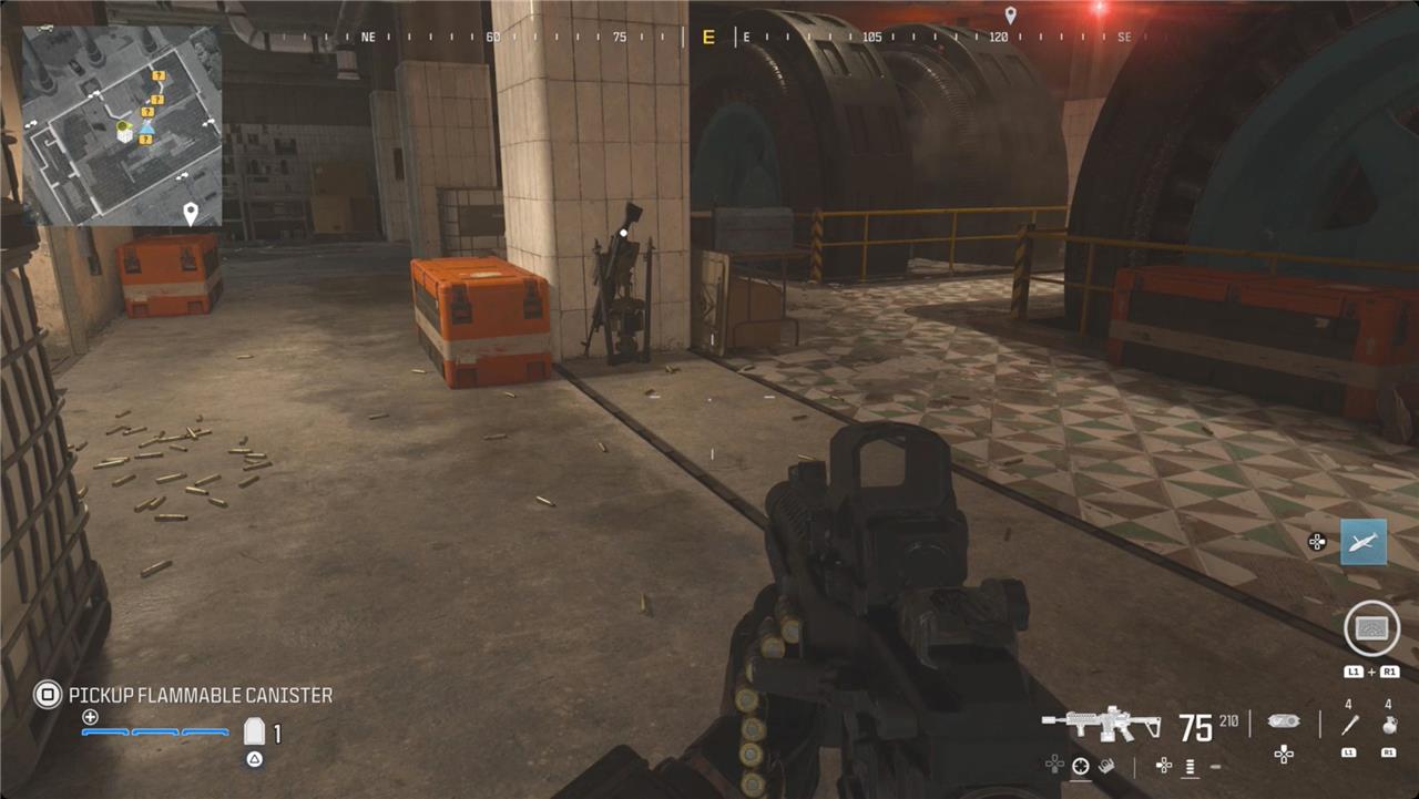 Head south and follow the road along the west side of the map. Take the first right to find a low building. The Incendiary RAAL MG is inside in the northwest corner.