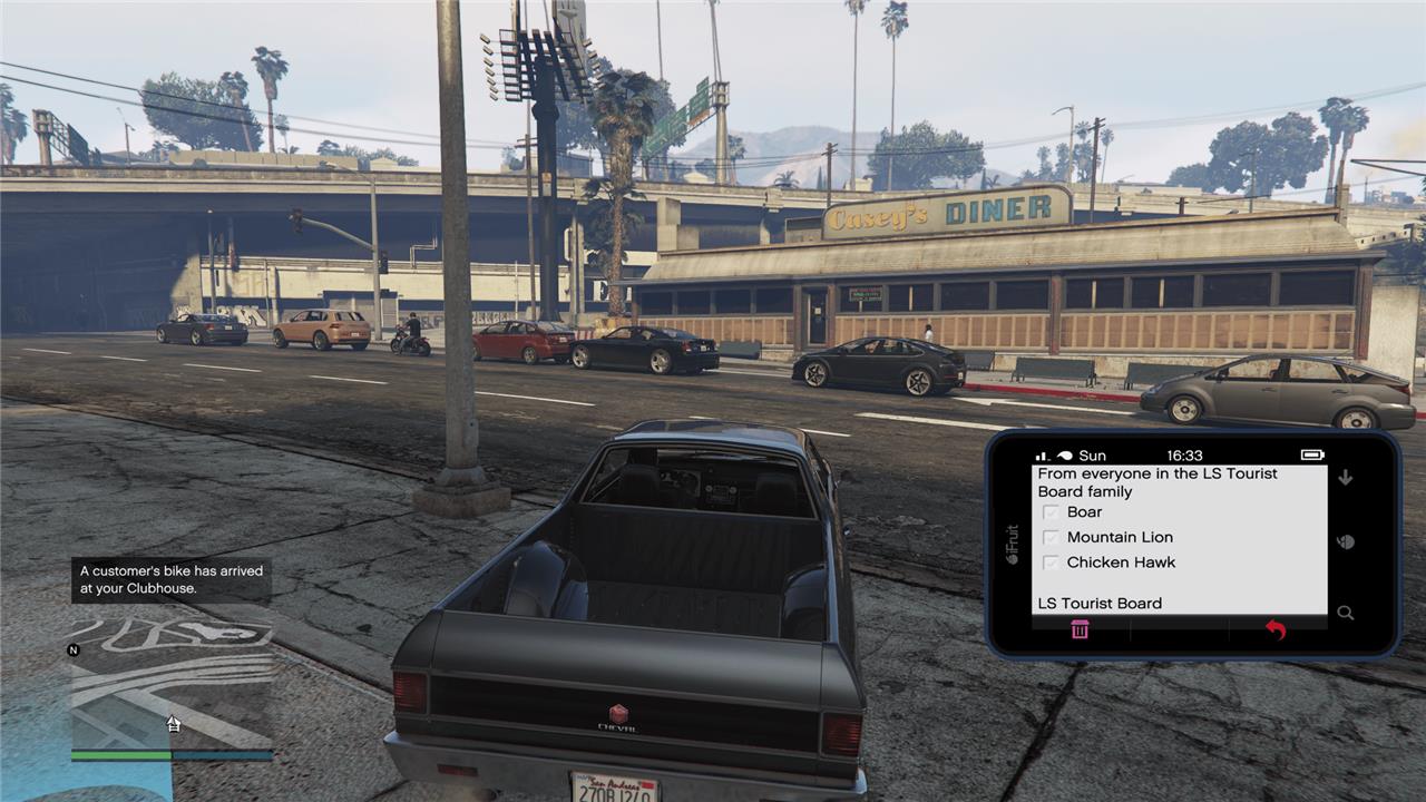 Animals arrived in Los Santos with the Chop Shop update. Each real-world day, the LS Tourist Board selects three kinds of animal from a list of 15 for you to photograph. You’ll get an email to your phone with the list.