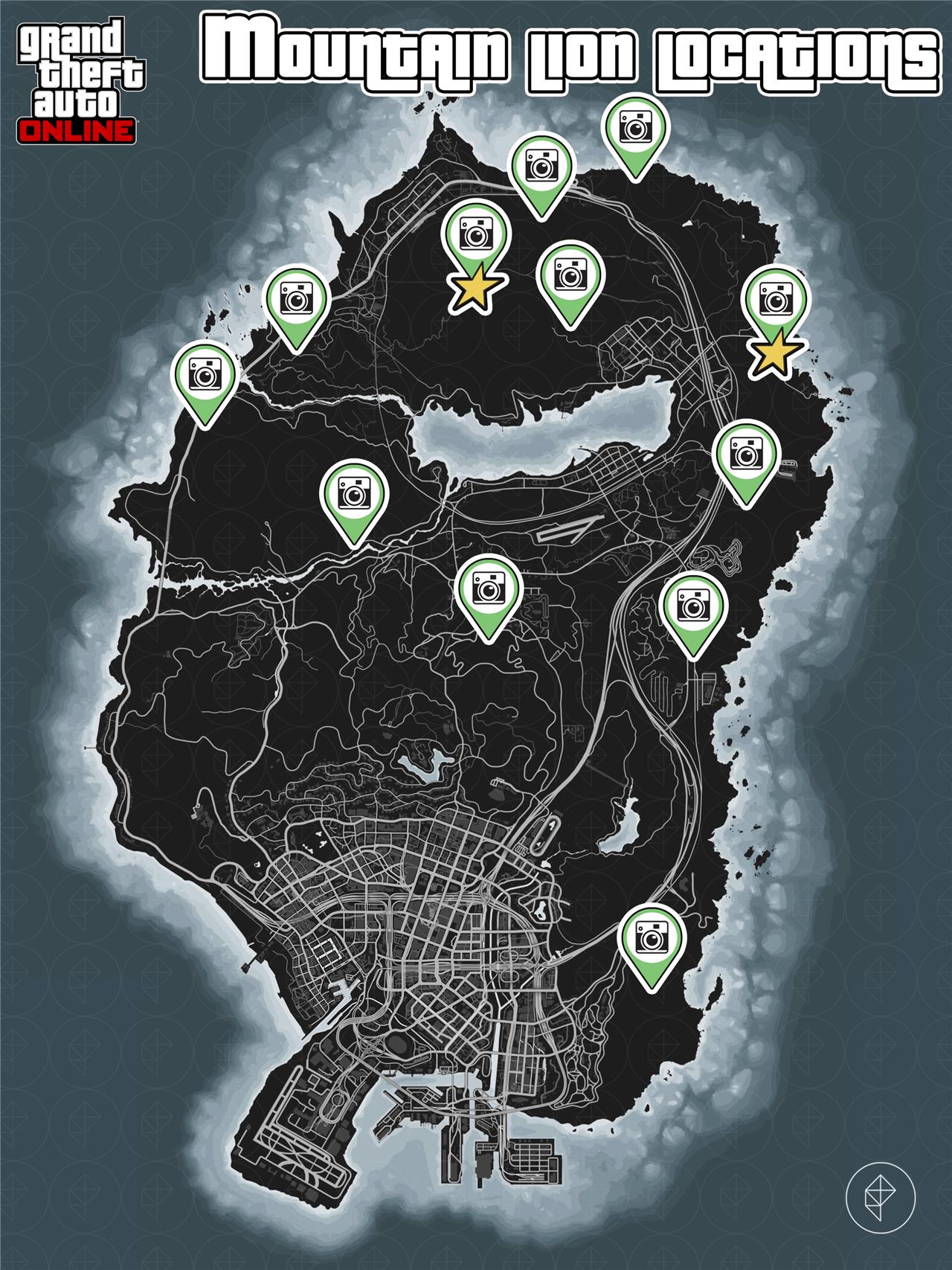 Mountain lions spawn in some of the more wild areas of GTA Online. They’re more common at night and also extremely aggressive, so you’ll have to be careful snapping their picture.