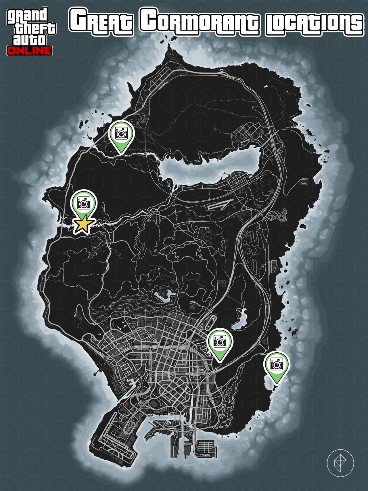 Great cormorants in GTA Online can primarily be found around bodies of water and specific wilderness areas. The best locations to spot these distinctive black birds with yellow beaks include Lago Zancudo and the nearby Zancudo River, where they often stand by the water’s edge. Additionally, Cassidy Creek north of Fort Zancudo and a small creek on the eastern edge of Murrieta Heights are good spots. For a more open area, the Grand Senora Desert and Mount Chiliad State Wilderness also host flocks of great cormorants flying in the sky. Players can also find a solitary great cormorant on a small island in the Pacific Ocean near the map’s eastern edge. These locations offer ample opportunities to photograph the birds for wildlife challenges in the game.