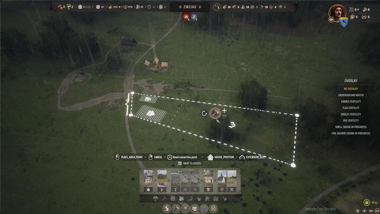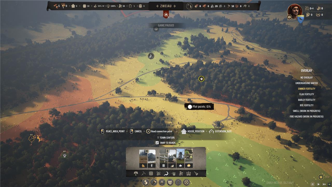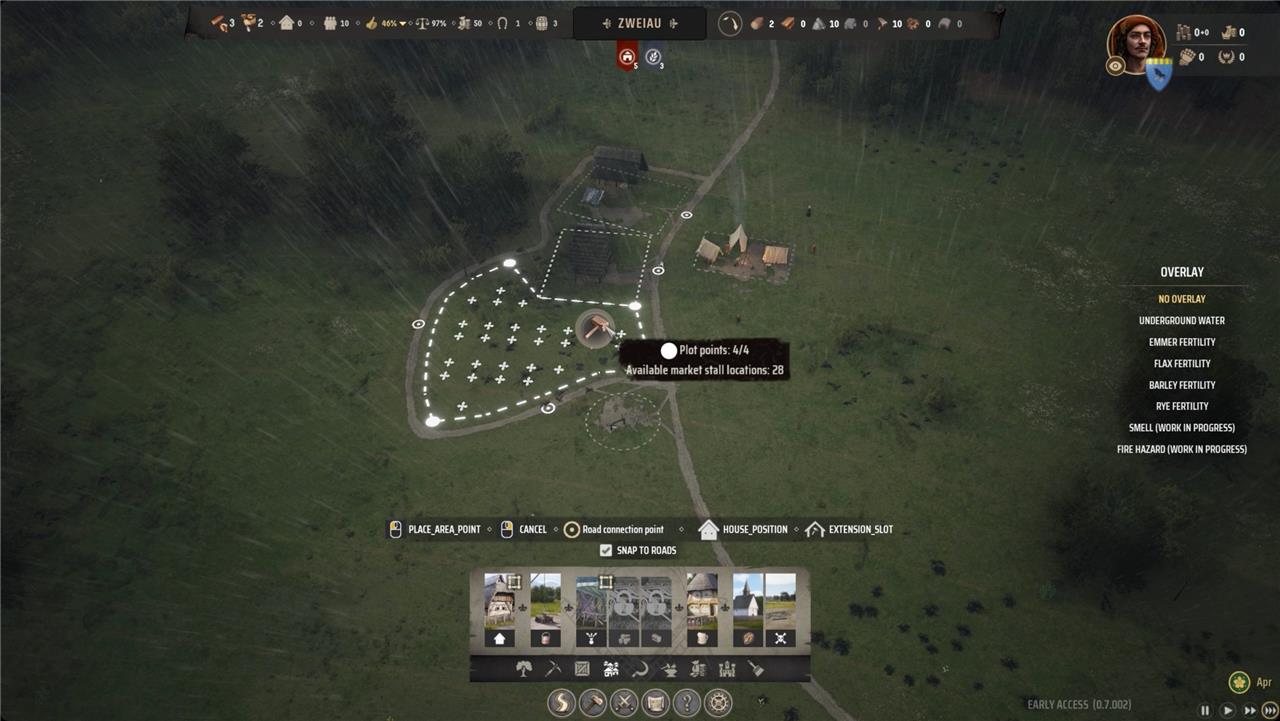 Before you start farming in Manor Lords, it’s crucial to plan carefully by selecting fertile land and reserving it for future farm plots without immediately beginning cultivation. Use the fertility overlay in the Construction menu to identify optimal spots, ideally with at least moderate fertility, avoiding overlap with other resource deposits. Place farm plots early to protect valuable farmland from accidental construction, but hold off on actual farming activities until your infrastructure and population are ready to support it. This strategic reservation ensures you have the best land secured for efficient crop production when the time comes to sow and harvest, aligning with the game’s seasonal farming cycle and maximizing your village’s growth potential.
