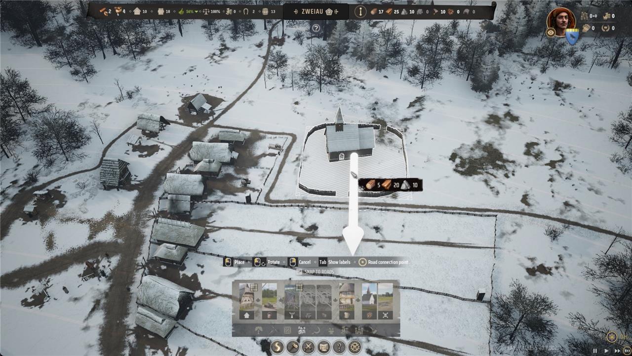 Prioritize building a Church early to significantly boost villager happiness and unlock further advancements. Expand your road network to connect new housing and production buildings, ensuring smooth movement of goods and people. Increase transport capacity by adding Hitching Posts and build a Trading Post near the map edge to sell surplus resources and generate Regional Wealth, which is crucial for upgrades. Diversify food production with Goat Sheds and establish a Tannery to process leather, supporting both economy and villager needs. As your population grows, continuously upgrade and add Burgage Plots to prevent homelessness and maintain high approval ratings.