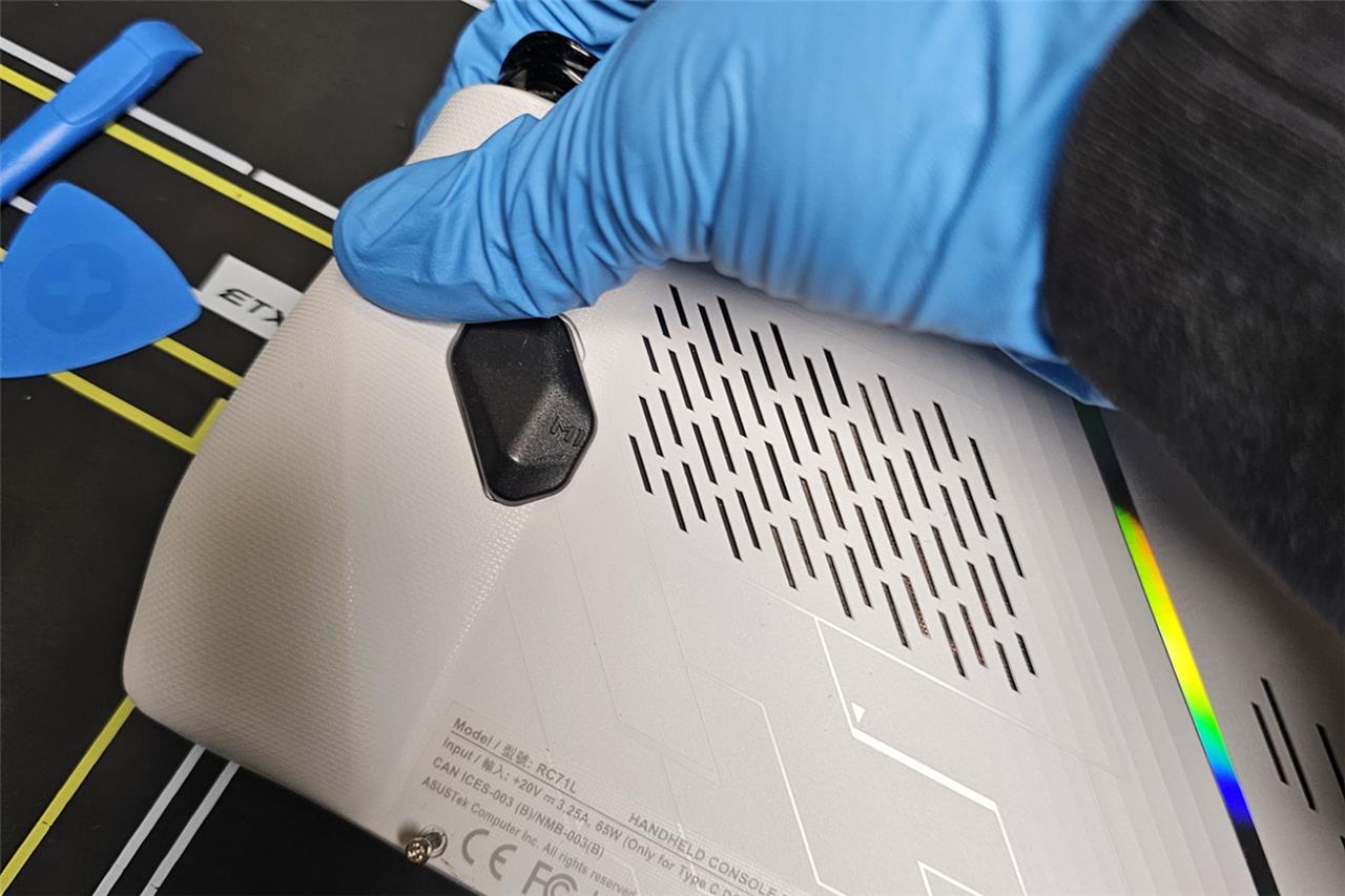 A general rule before opening any device is to first power it down. Not just that: Draining the battery is never a bad idea during this process. Asus recommends discharging the battery to around 25% before operating on the ROG Ally, as a charged battery is a potential fire hazard if something goes wrong.