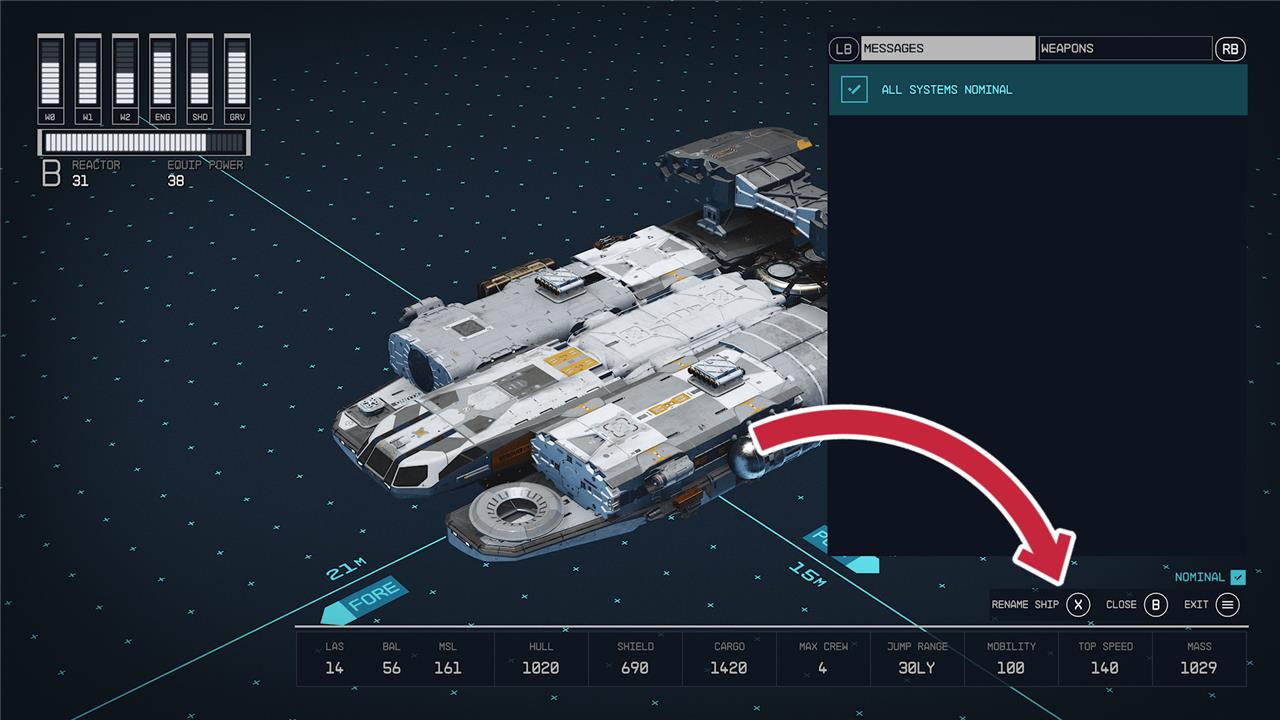How to rename a ship in Starfield