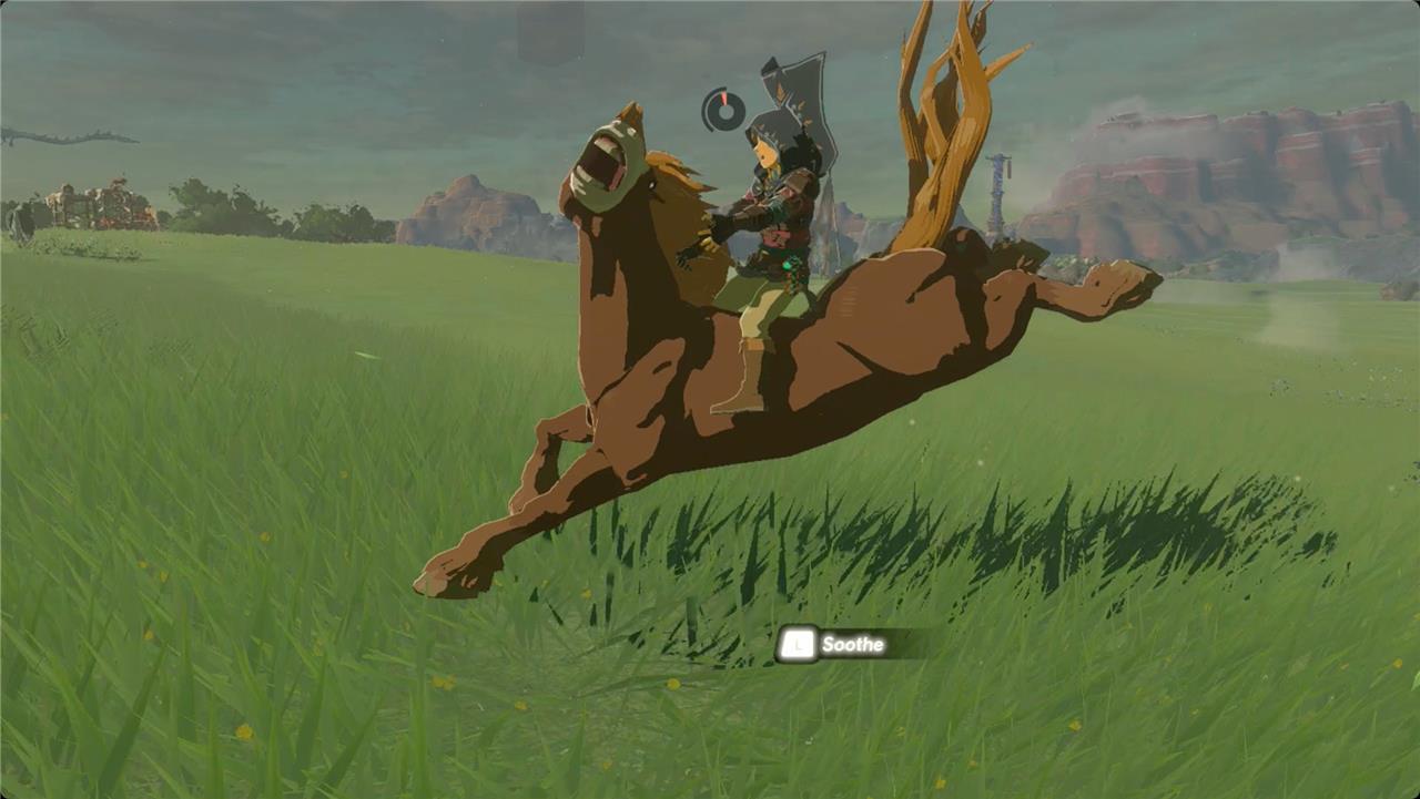 Wild horses in Tears of the Kingdom can be nervous and unpredictable, so approach them quietly by crouching and moving slowly through tall grass. Once close enough, press the prompt to mount the horse, then quickly soothe it by pressing the calming button repeatedly as it bucks and resists. Each successful soothing lowers its panic, helping you gain trust faster. Using stamina elixirs can help maintain control during this process, especially with stronger or rarer horses.