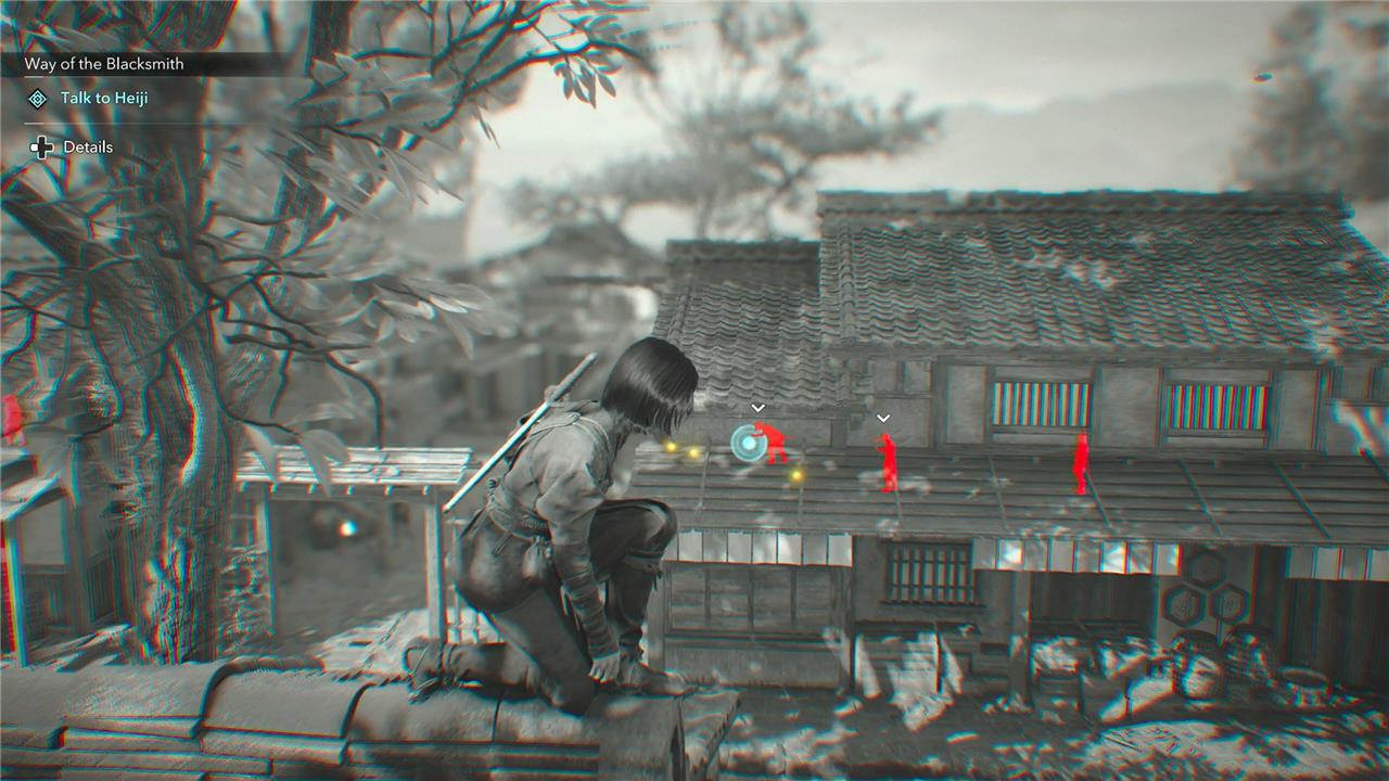 Yes, mission objectives in Shadows can sometimes be cloyingly vague. But you have other exploration tools at your disposal beyond guided exploration mode. Deploying scouts can help further narrow down search areas, and in some cases will straight up give you a waypoint. You can also use Eagle Vision and observe your immediate environment. Key objectives, like Heiji, will show up as blue dots (see above).