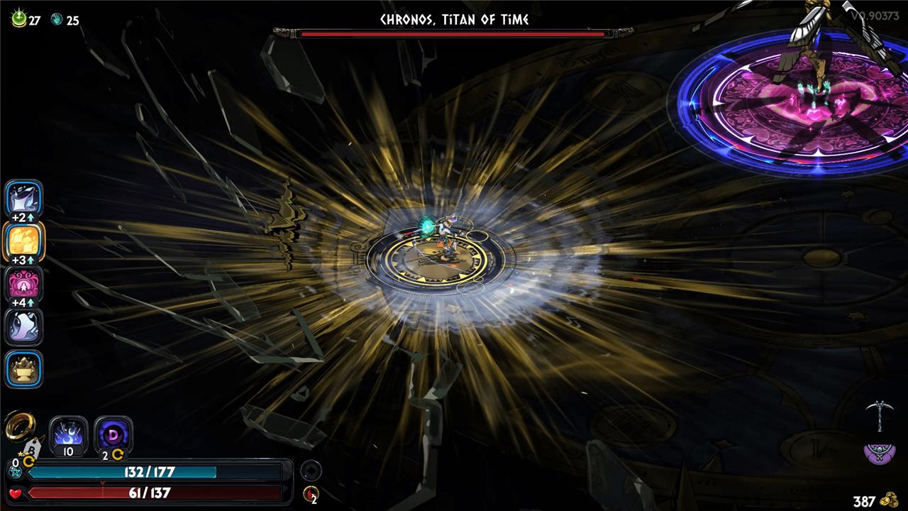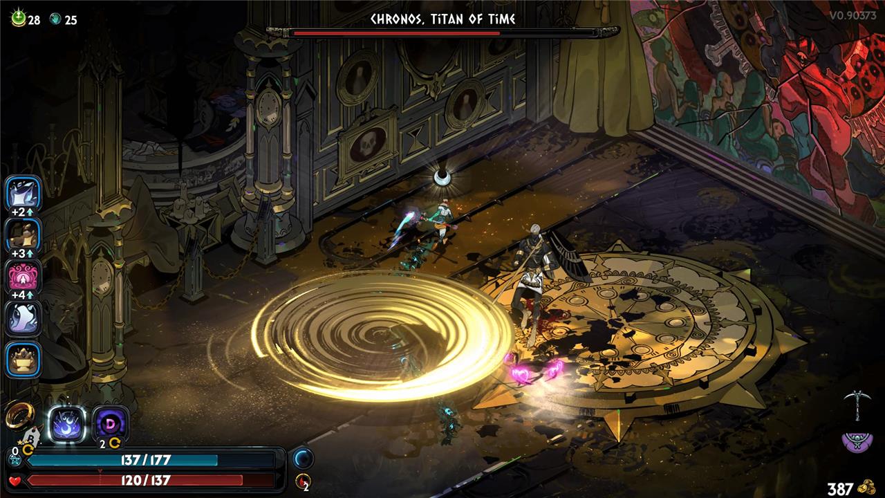 Chronos will occasionally shield himself and cast in the middle of the room. Just dodge him or kill his enemies until he becomes vulnerable again. Sometimes, when he goes over to the throne area, he’ll start spinning his cane at you to try and suck you in. Dash behind him and just beat on him when he does this.