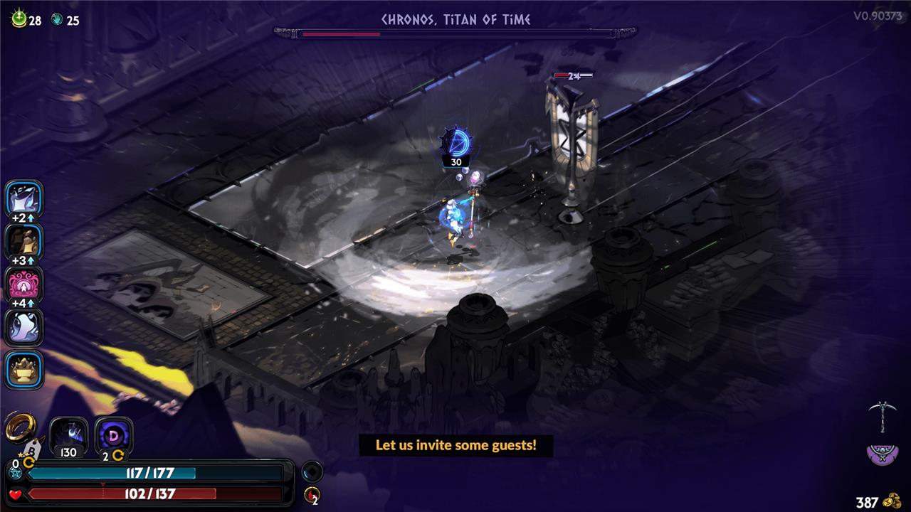 Once you reach the Titan of Time sitting in the depths of Hades, he’ll opine at you for a bit and then the fight will begin.